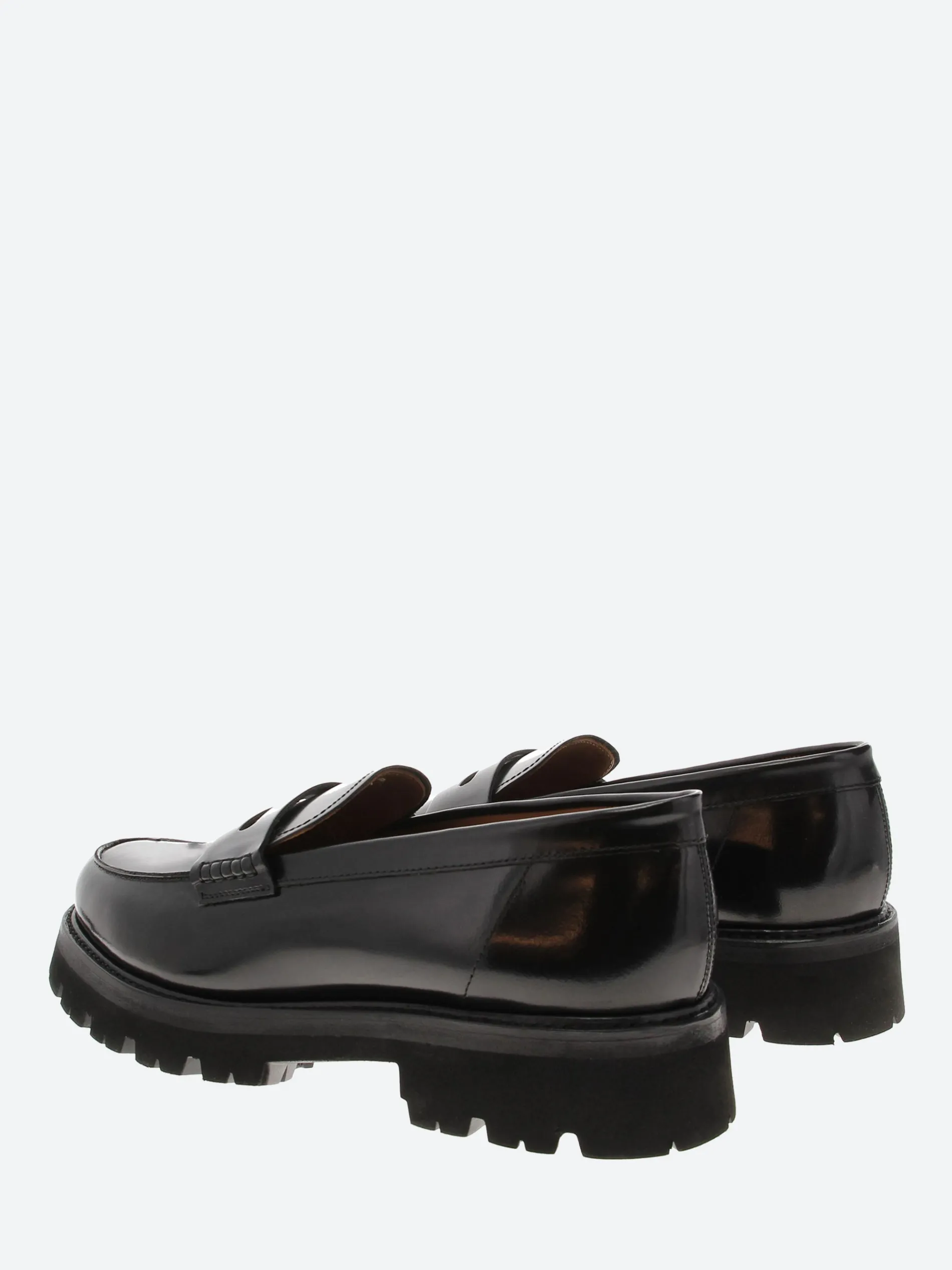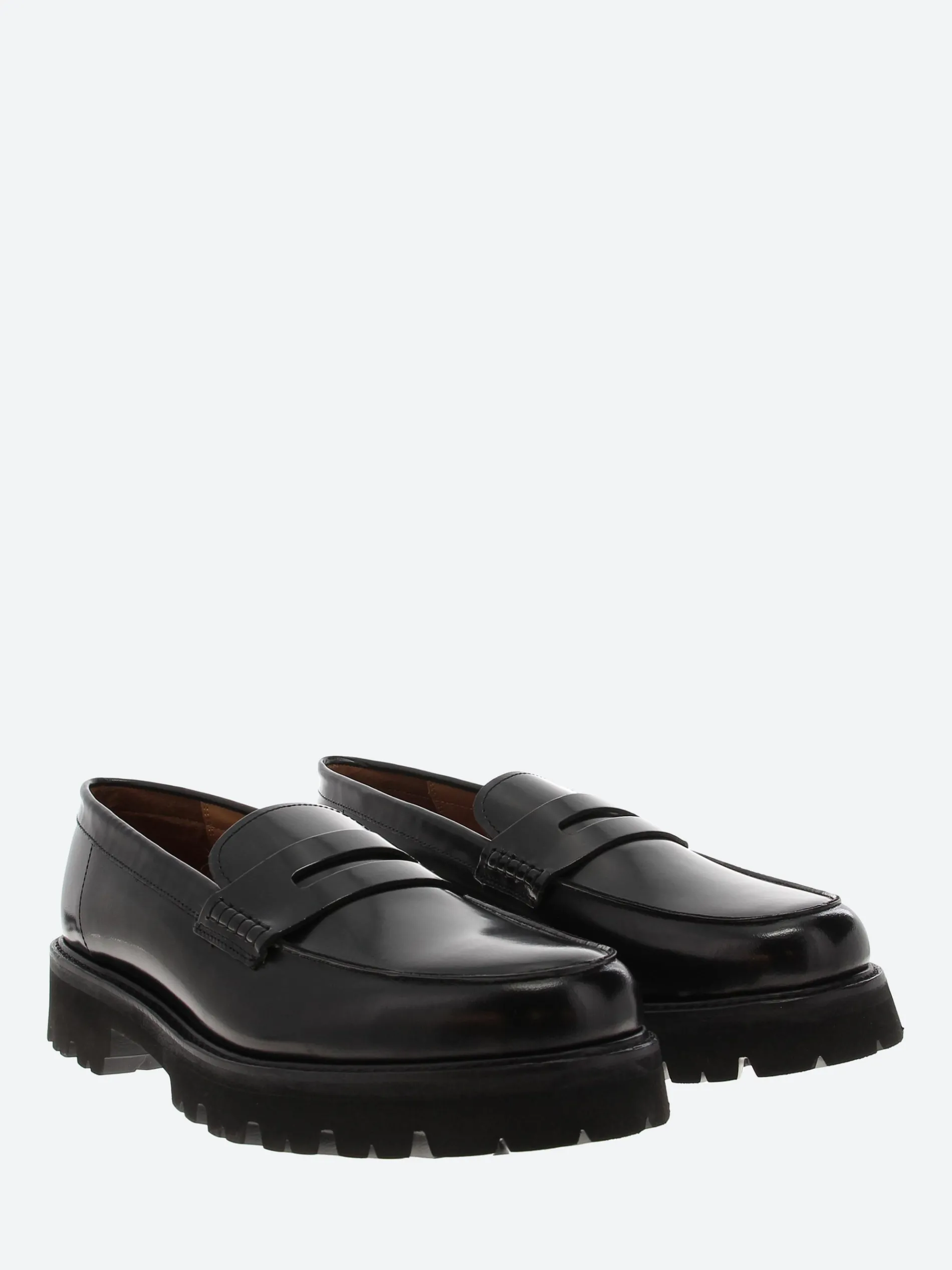 Grenson Jefferson is a penny loafer with butted apron seam and simple saddle with handsewn detailing.