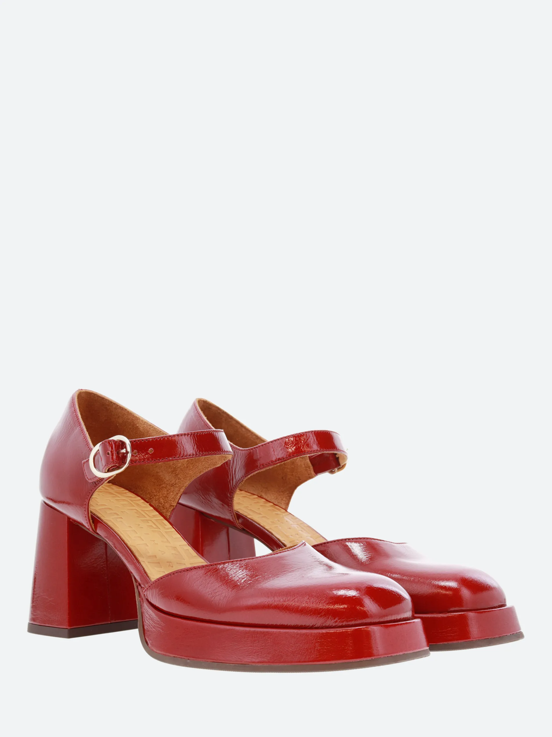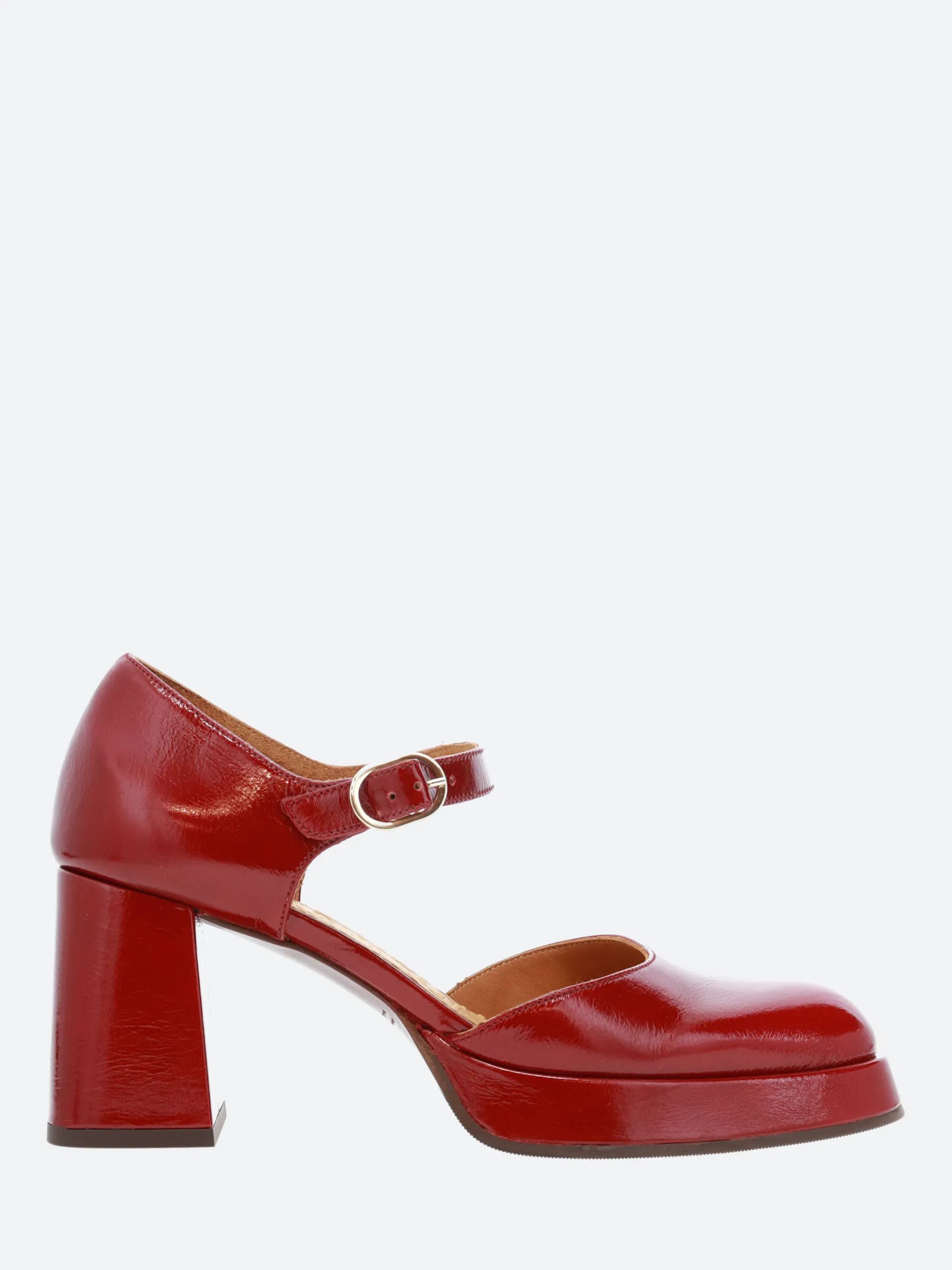 Chie Mihara Kento, an ankle strapped sandal with a soft leather upper, sitting on a high, stacked heel.