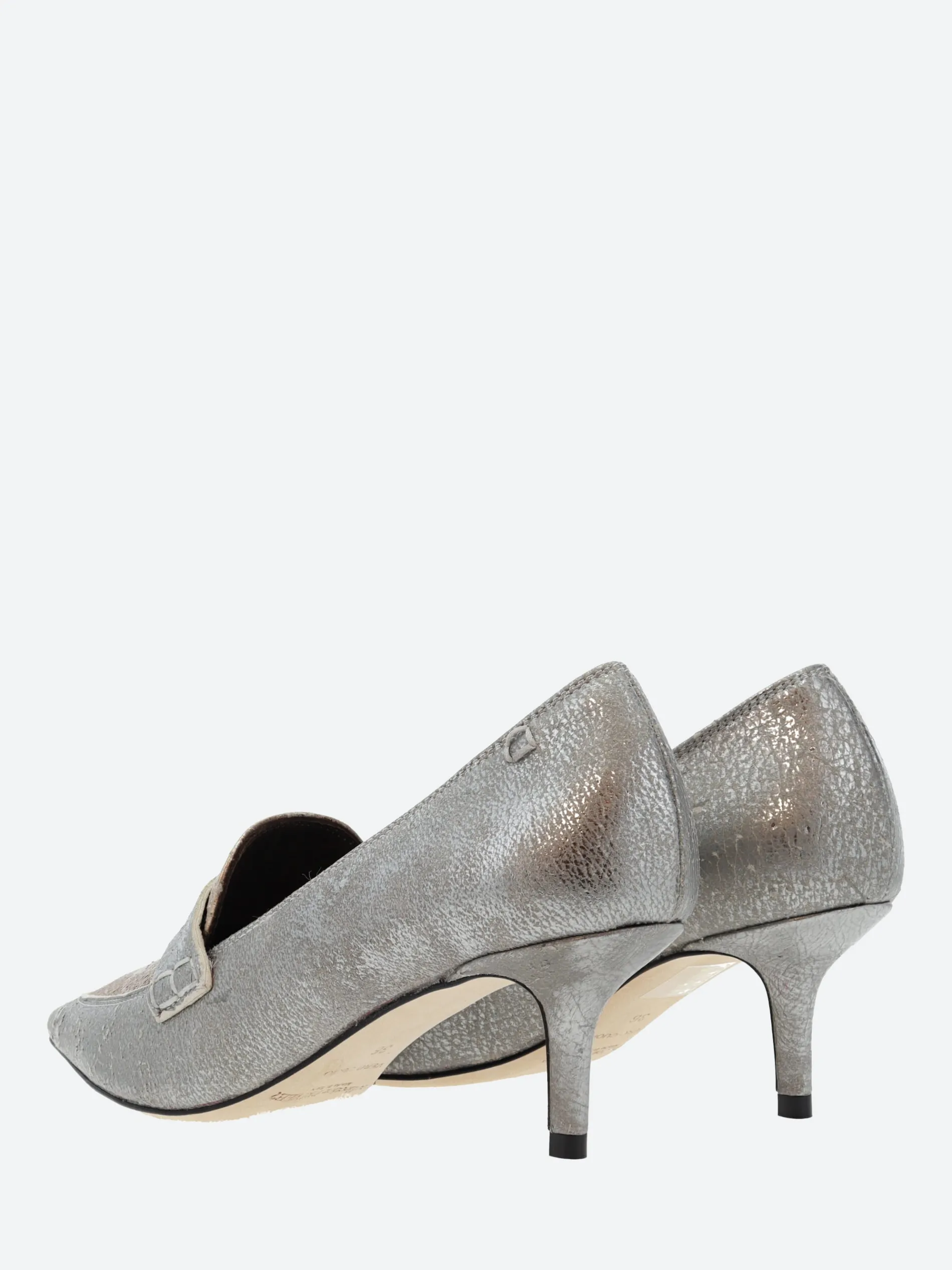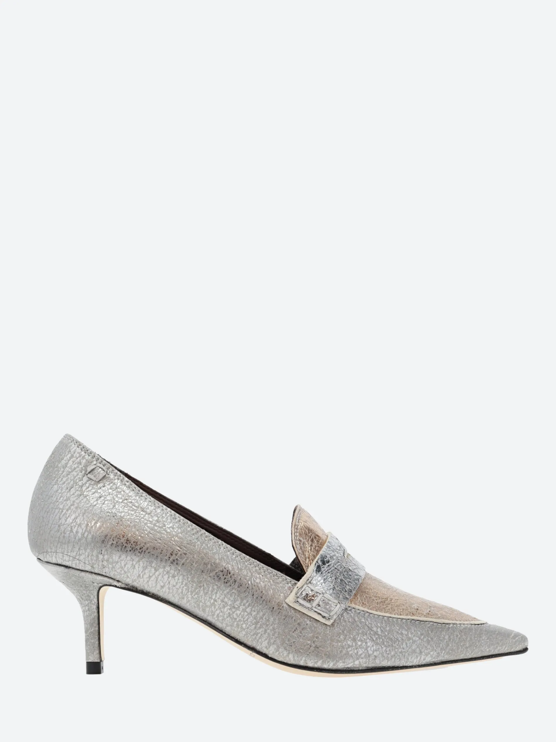 Collection Privee metallic calfskin heels with a pointed toe and lifted by a just-right kitten heel.