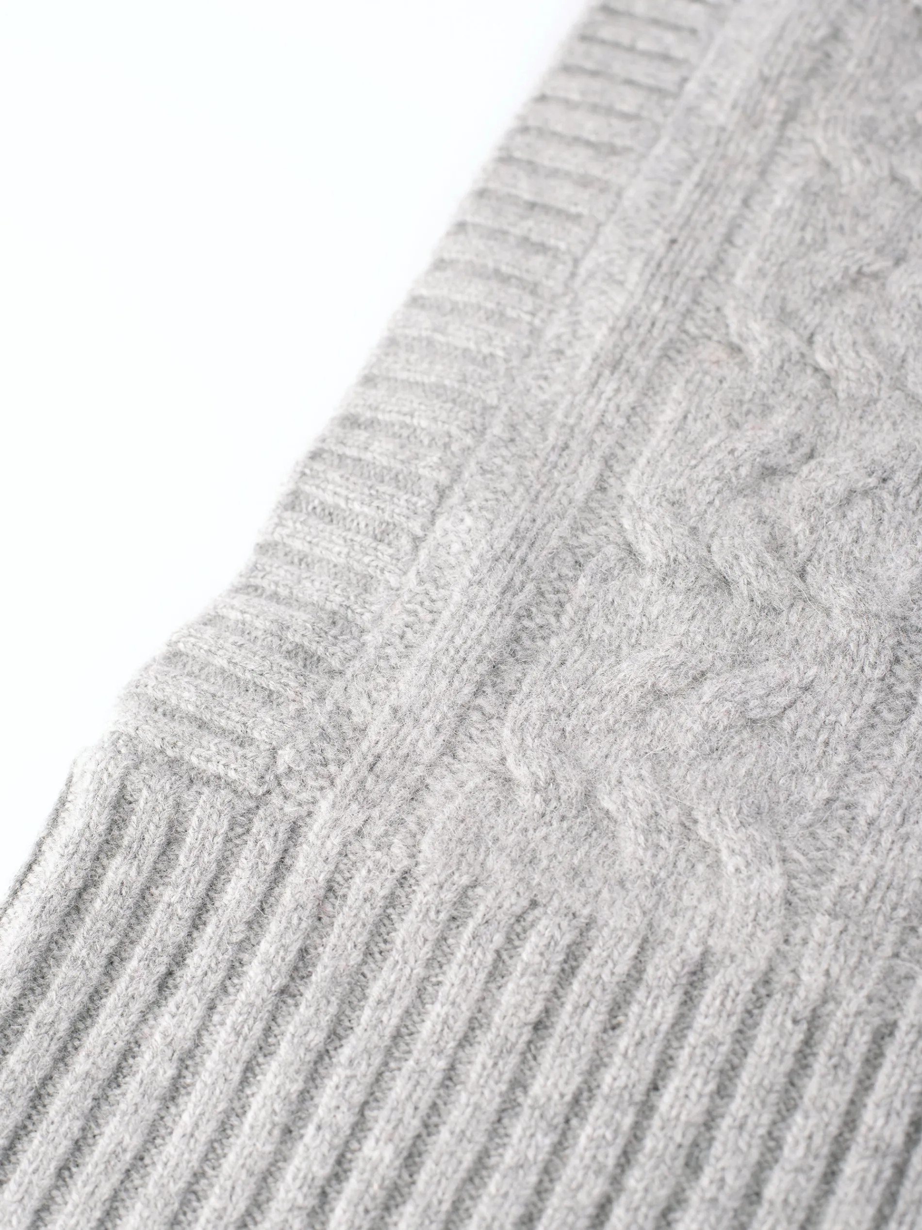 - Ribbed knit and cable knit details