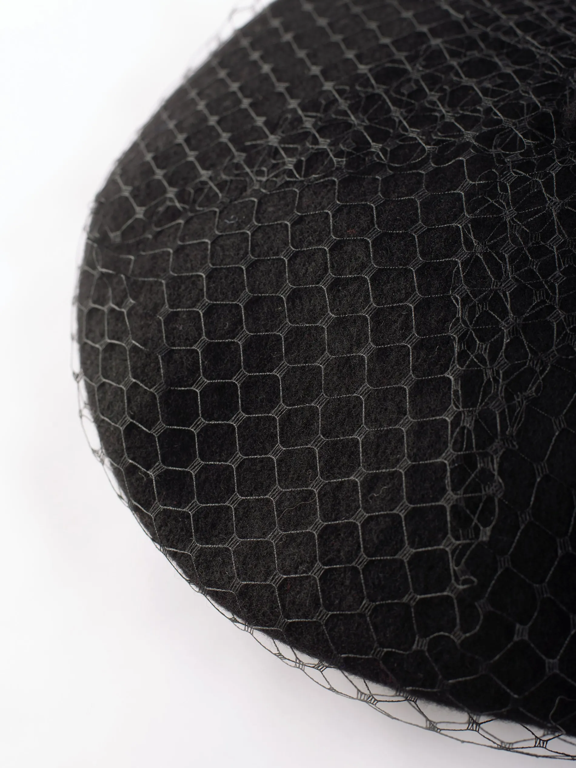 Small stylish classical beret with vintage cotton veiling, reminiscent of the 1970’s.
