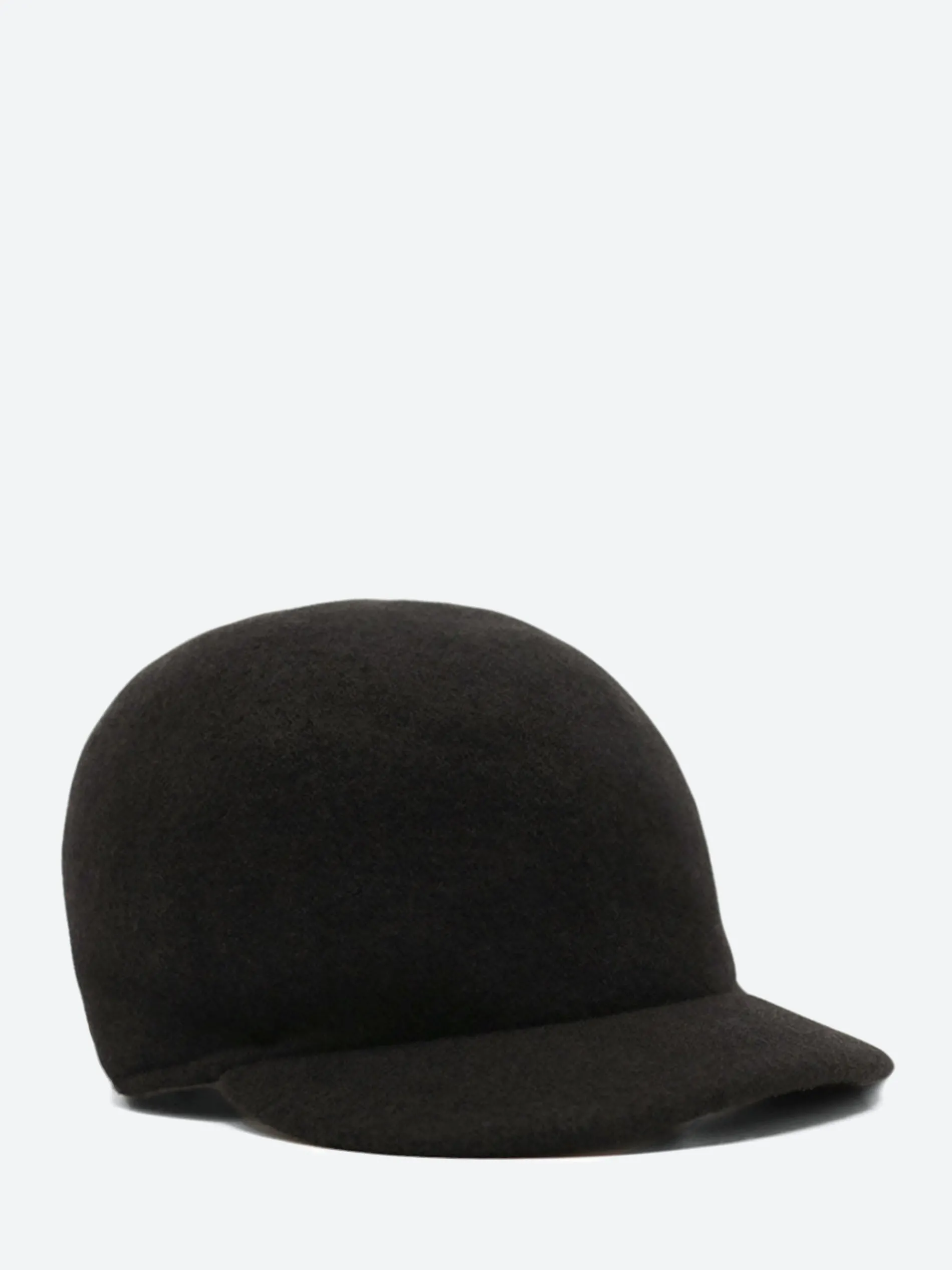 Soft rounded cap made from felted wool, with a knot closure at the back to adjust to the perfect size.