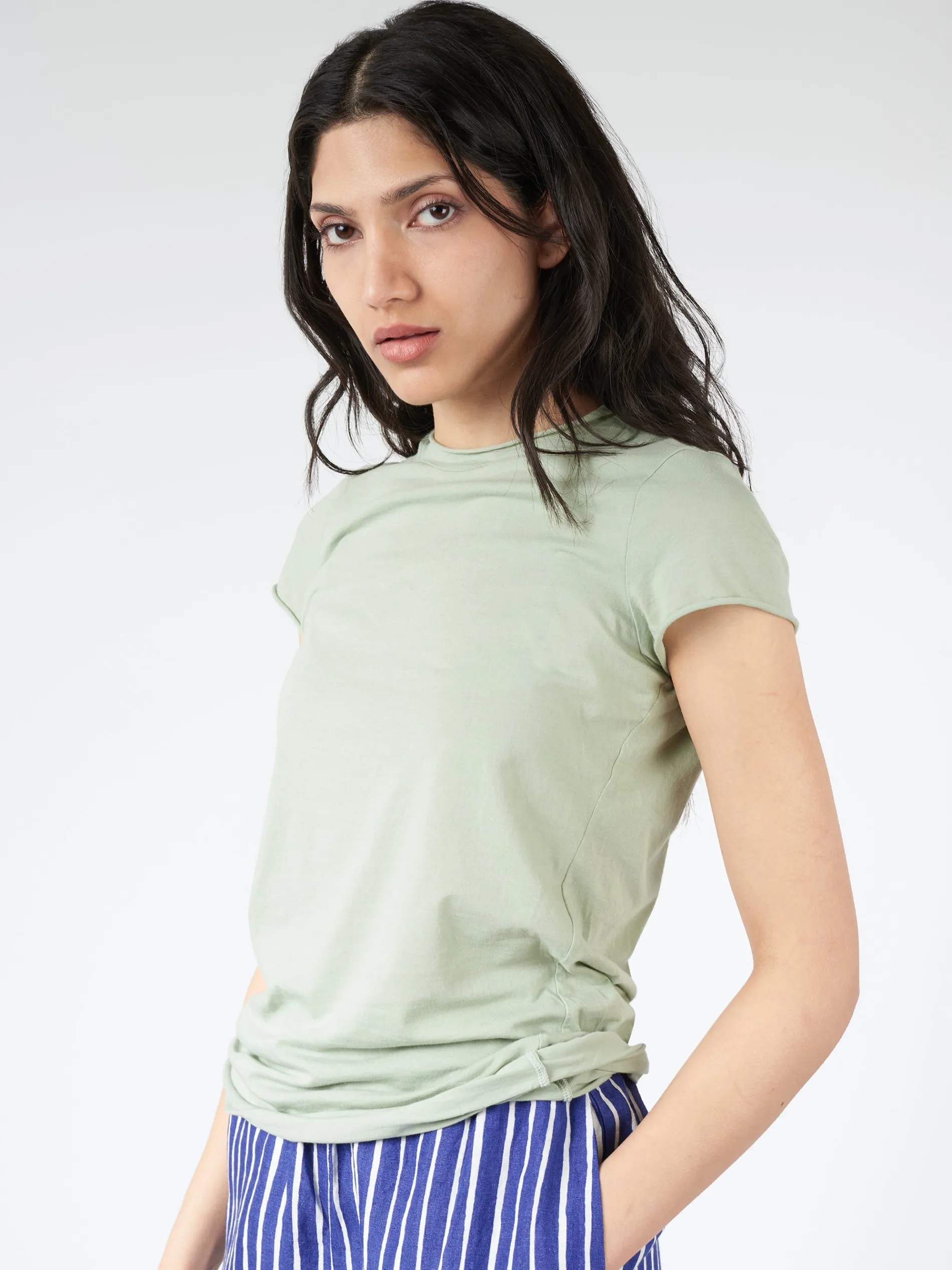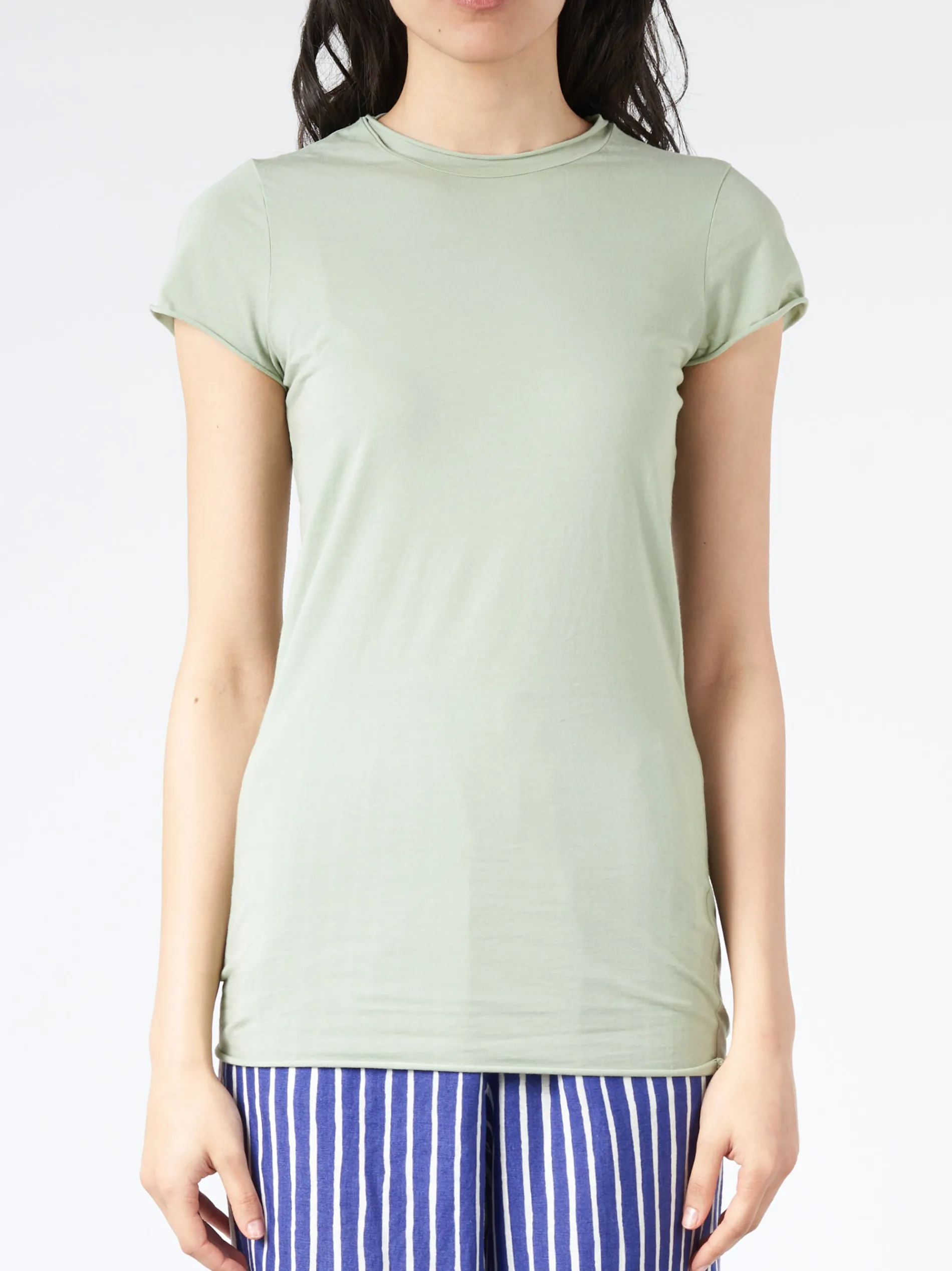 Labo.Art Basica is a short sleeve knit t-shirt with slight stretch. The piece stays true to the brands ethos of an uncomplicated aesthetic, embodying clean and simple elegance with a playful quirk.