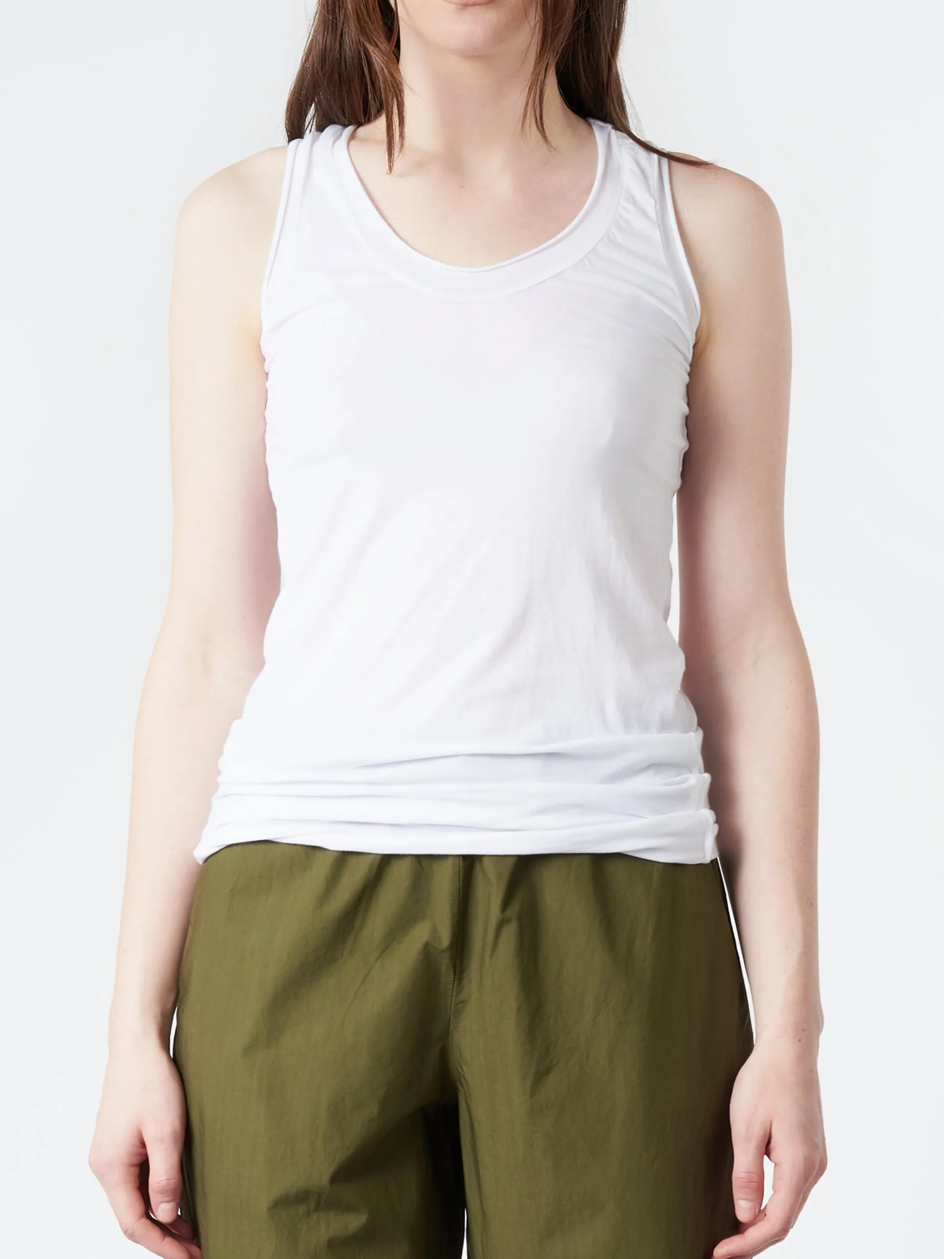 Labo Art’s Canotta is a cotton poplin tank top featuring a scoop neck, rolled edges and a slight racerback cut. This is a great quality basic with subtle details to set it apart from other tanks.