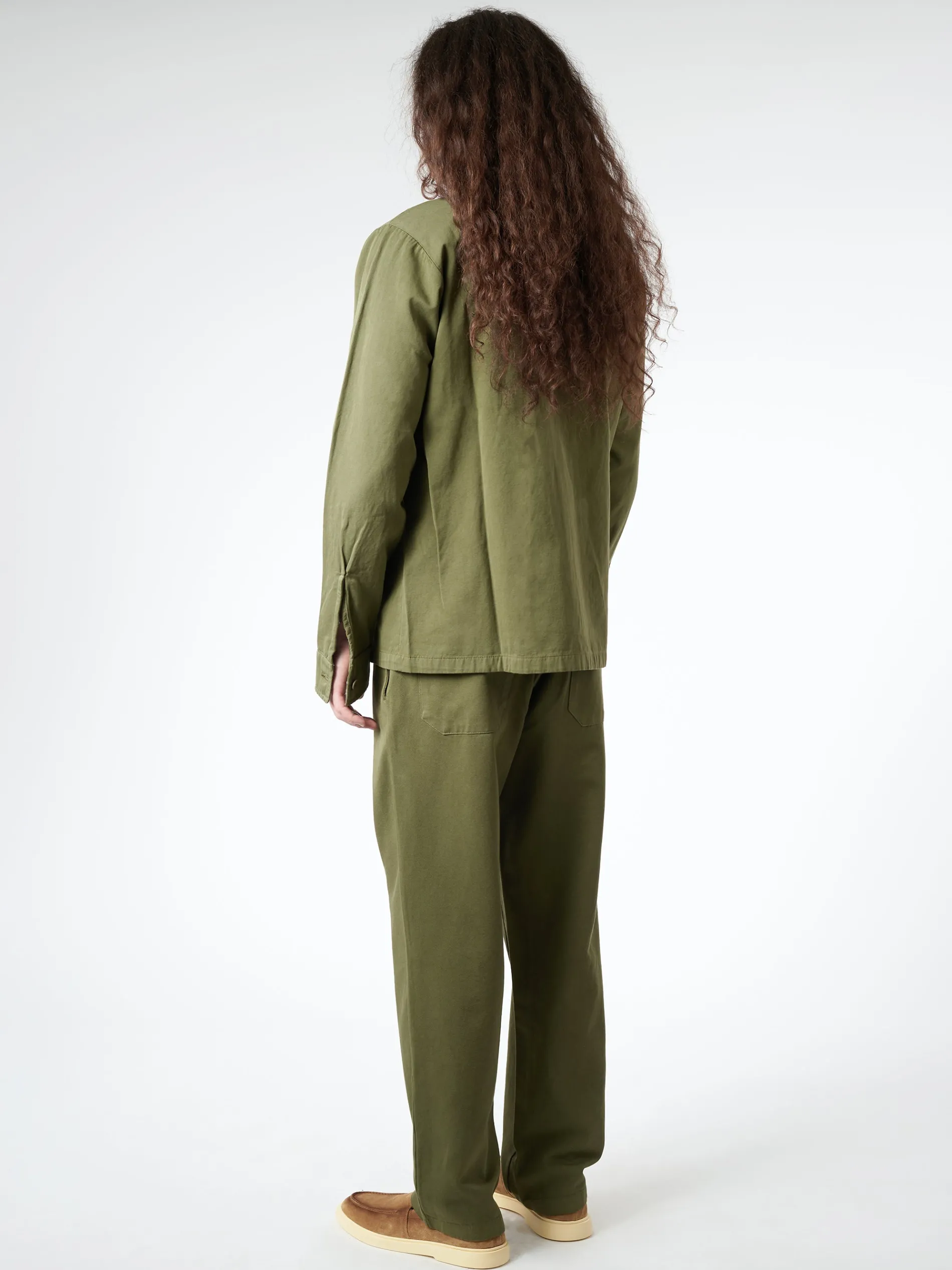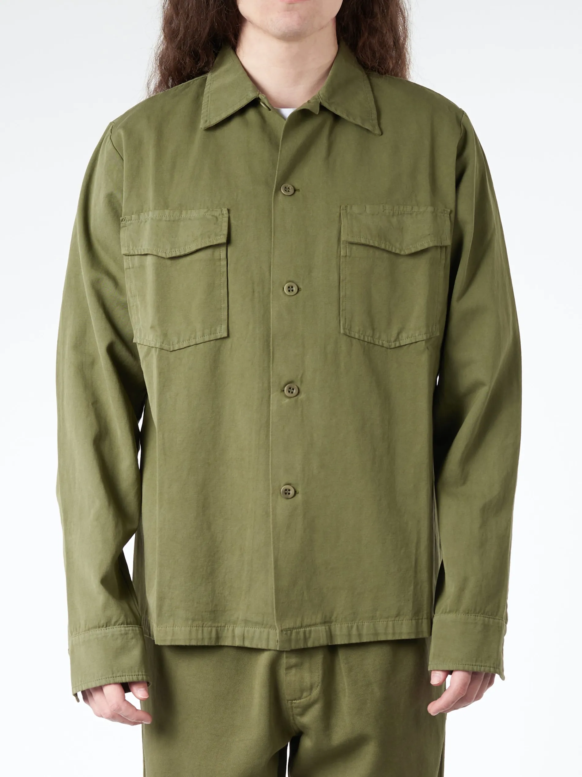 Designed using a soft cotton and linen blend, this jacket combines elements of traditional workwear. Two chest flap pockets and a full-button closure provide functional details for a versatile and stylish piece.