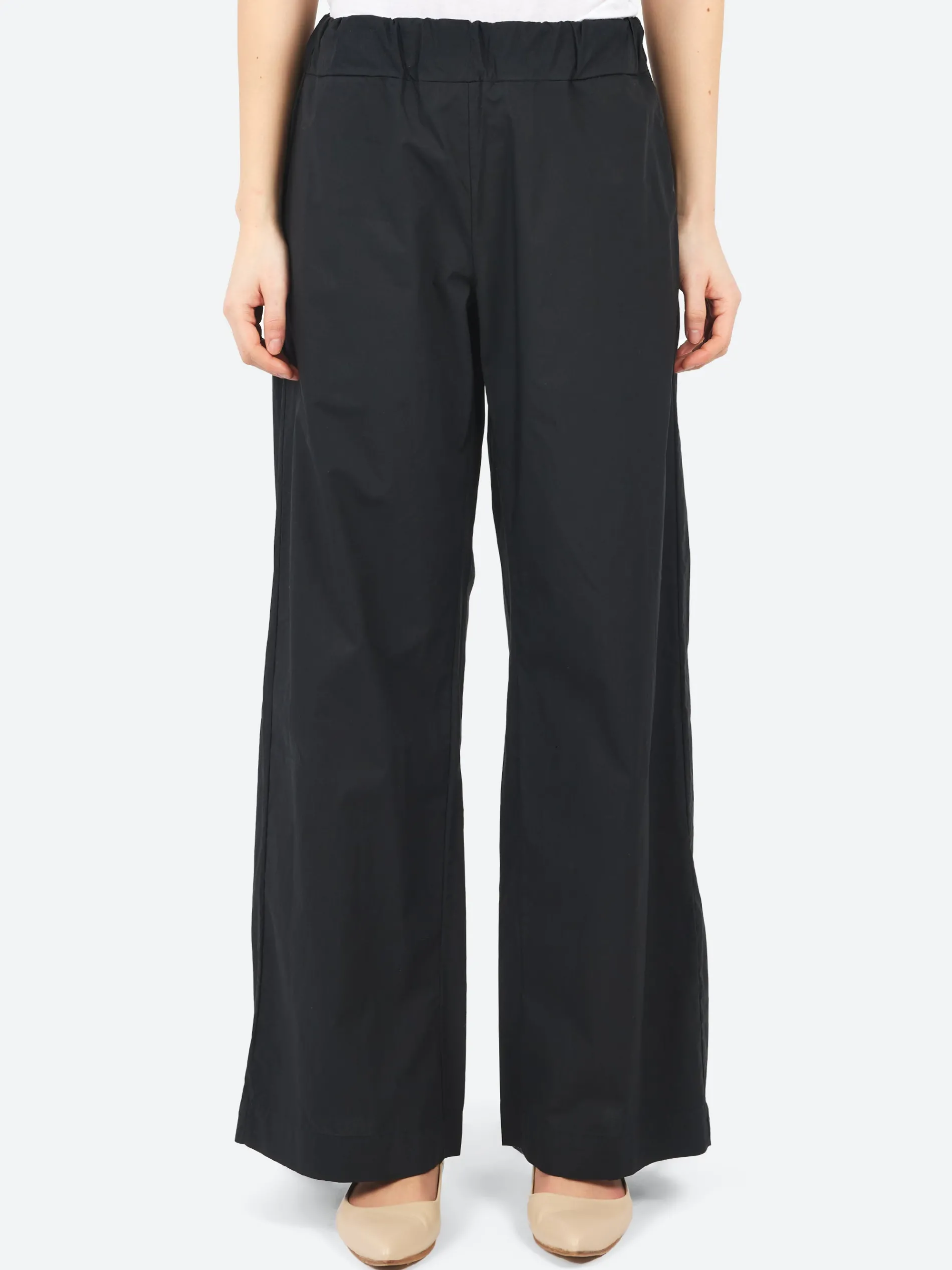 These pants feature a stretch waistband and are made from a crisp cotton poplin, making them both comfortable and stylish.