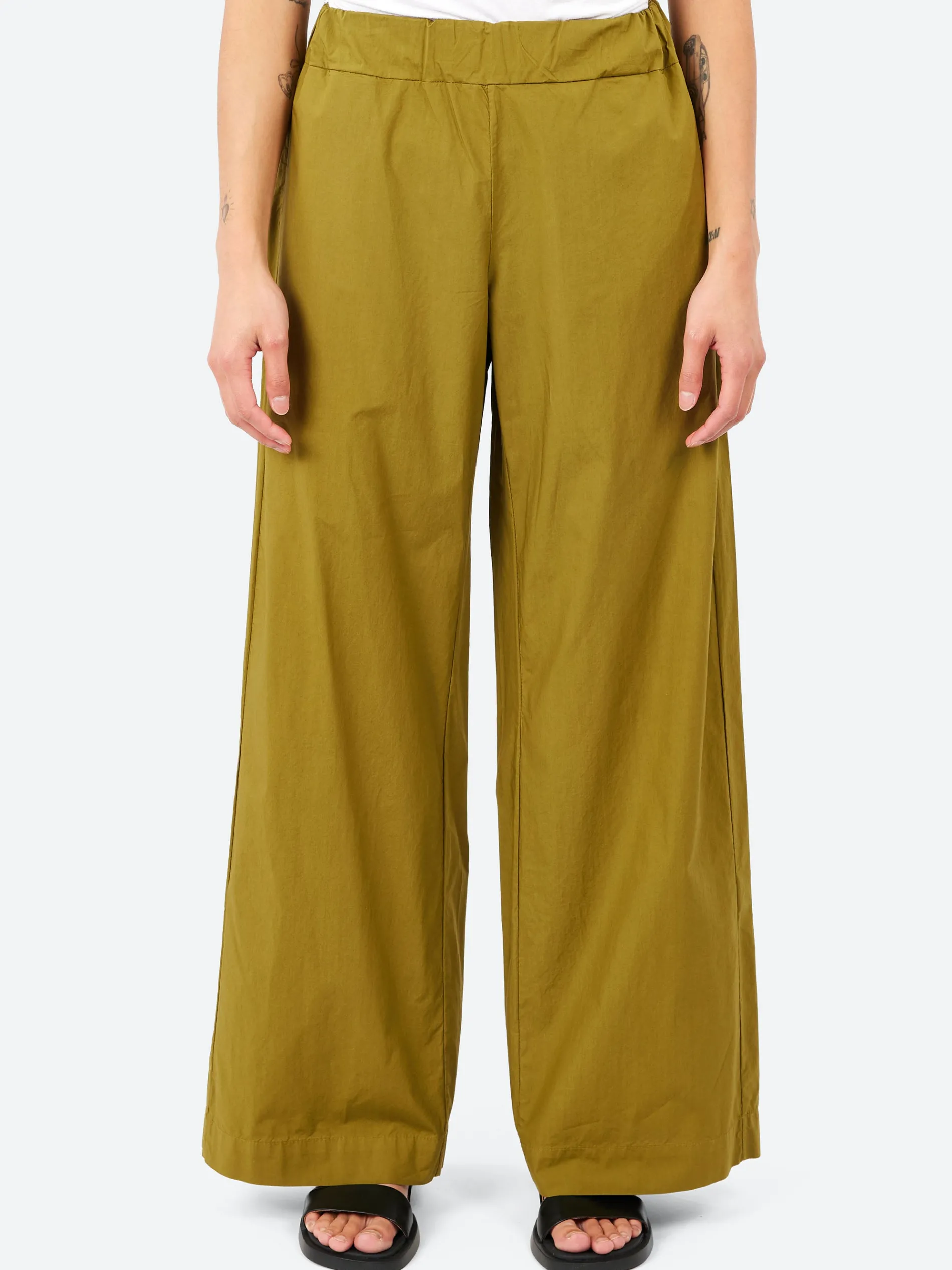 These pants feature a stretch waistband and are made from a crisp cotton poplin, making them both comfortable and stylish.