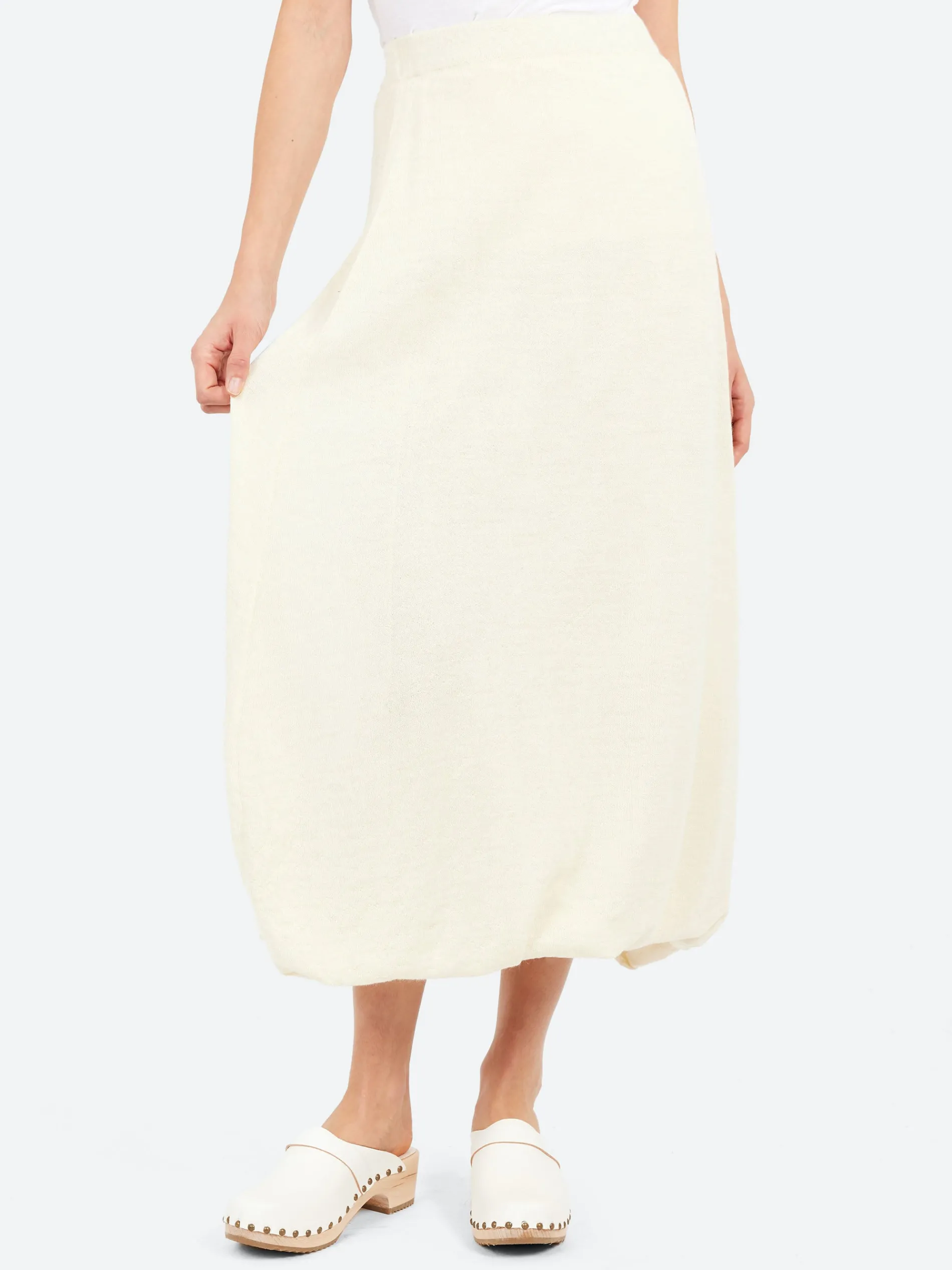The Lauren Manoogian Balloon Skirt is made from the finest grade alpaca, knitted in a high-gauge for a super-soft feel. It showcases a subtle irregular texture and is constructed with a double-layer design for added depth and comfort.