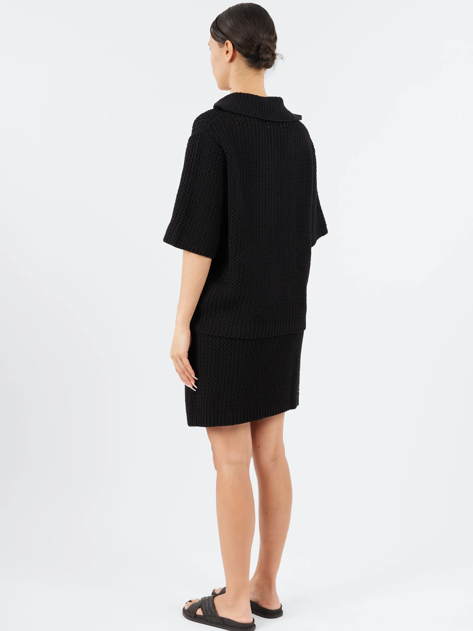The Rack Polo by Lauren Manoogian is a refined, hand-loomed knit top crafted in Peru from a premium blend of Pima cotton and linen. Featuring a distinctive zigzag stitch, ribbed collar and cuffs, and a relaxed silhouette, it offers both visual texture and breathable comfort. This versatile piece is designed to be worn year-round and pairs effortlessly with both tailored and casual looks.