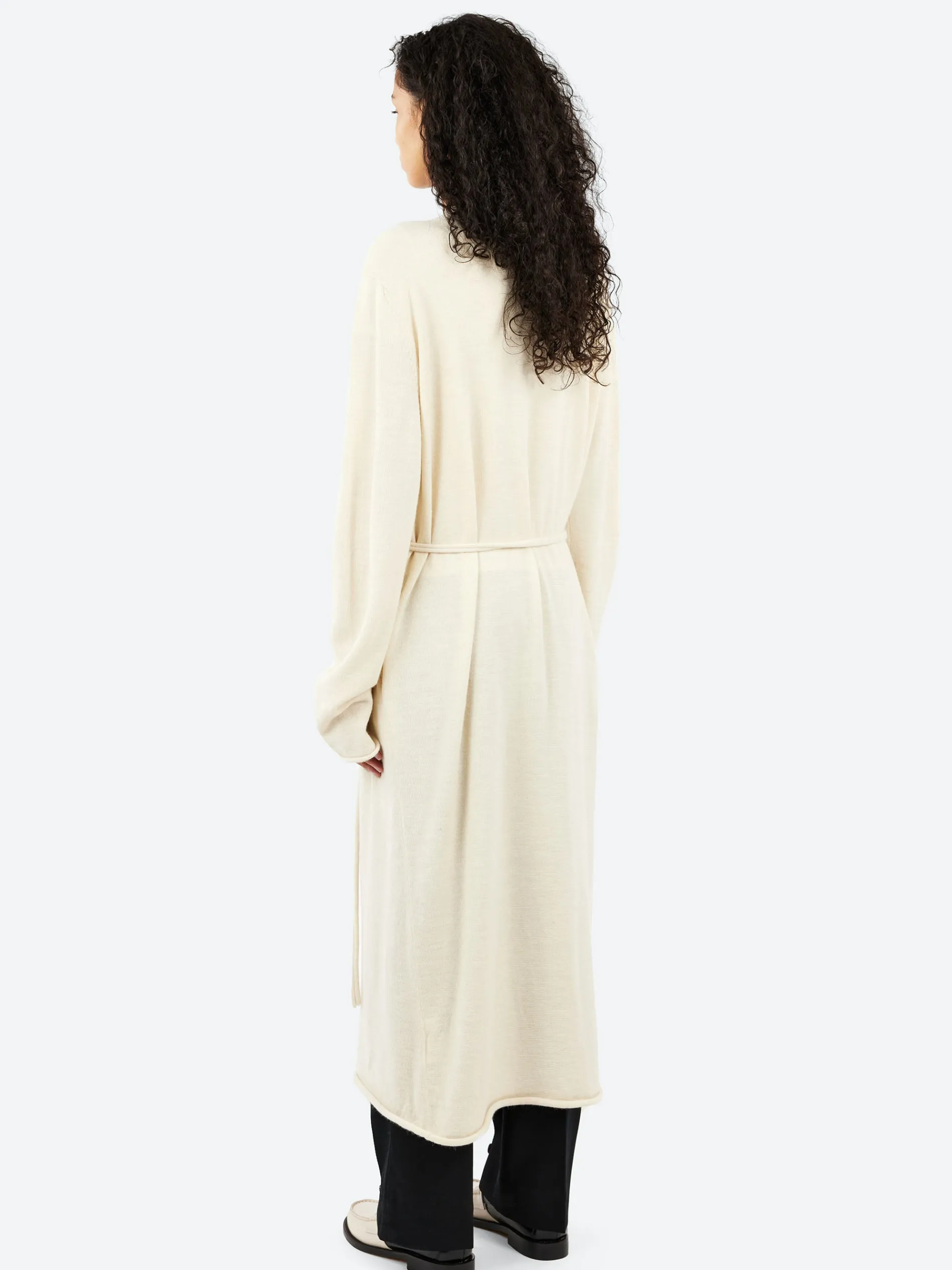 The Lauren Manoogian super fine long cardigan is made from the finest grade alpaca, featuring a high-gauge knit that offers an incredibly soft hand. The fabric has a subtle irregular texture, giving it a unique, refined feel.