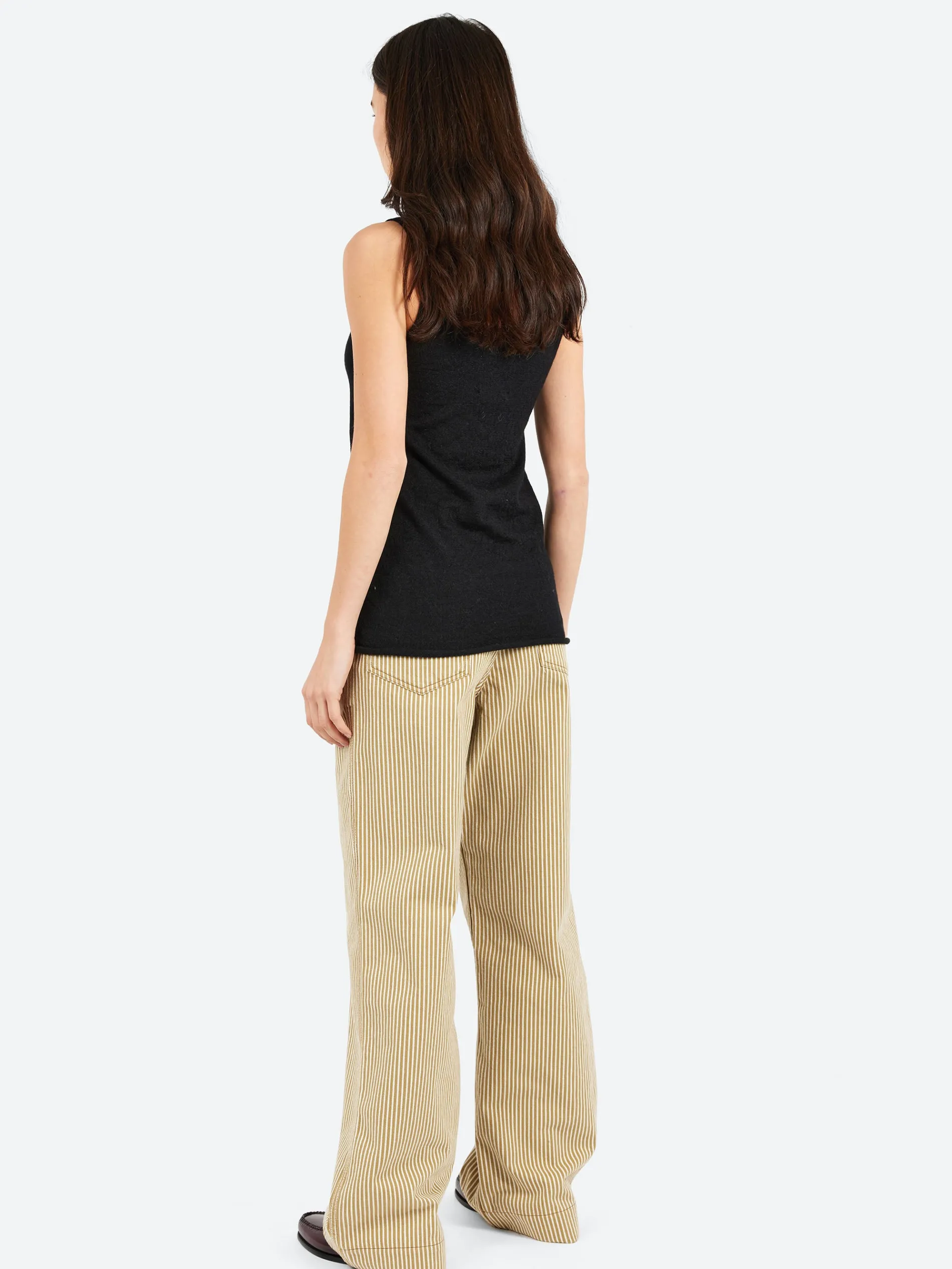 Lauren Manoogian tank with rolled finish at sleeves and hem in lightweight and high gauge baby alpaca knit.
