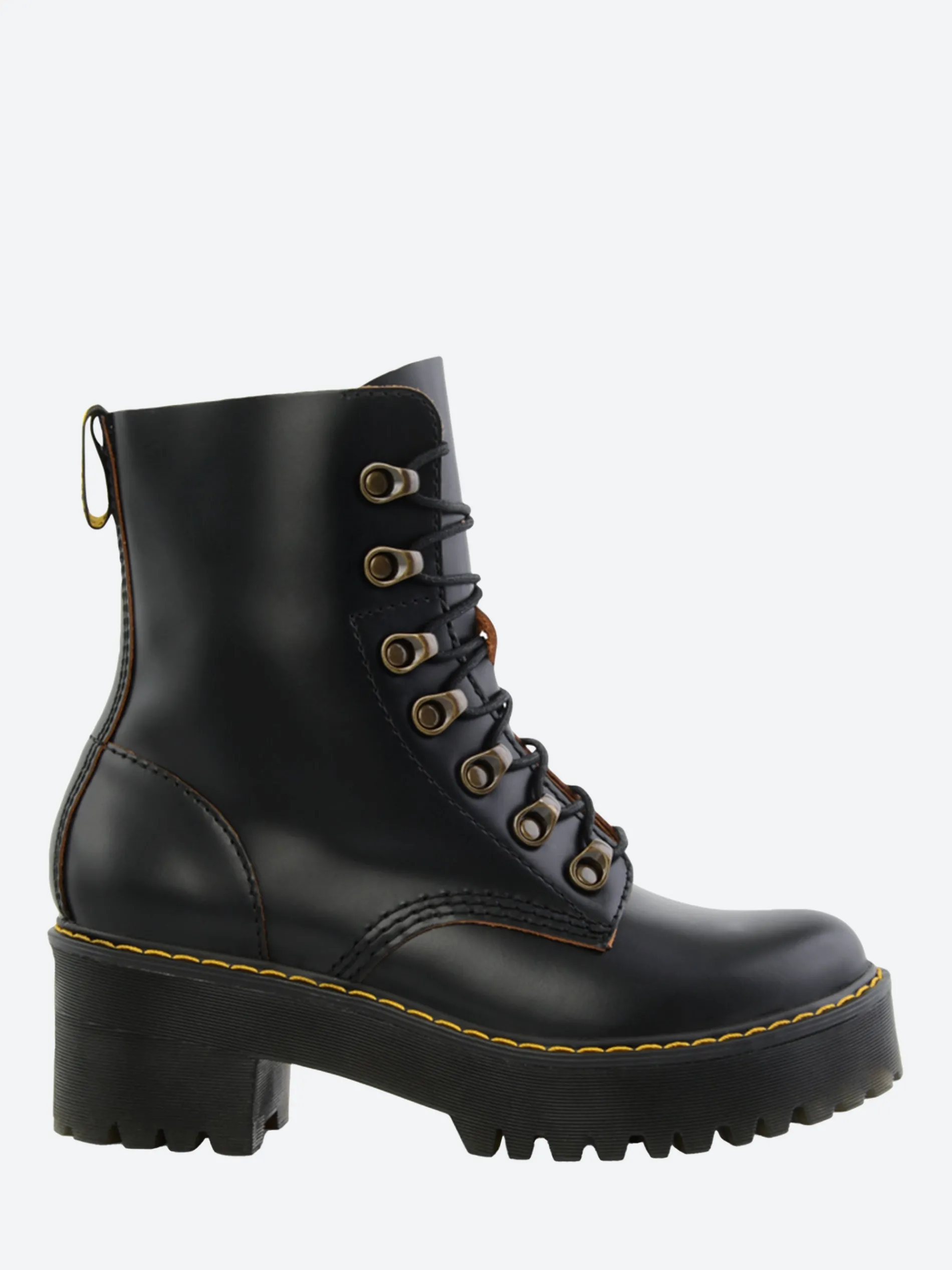 Dr. Martens Leona is a women’s boot packed with rugged features. Features a commando tread, a platform sole with a chunky heel and a sleek silhouette that strikes the perfect balance between femininity and tough.