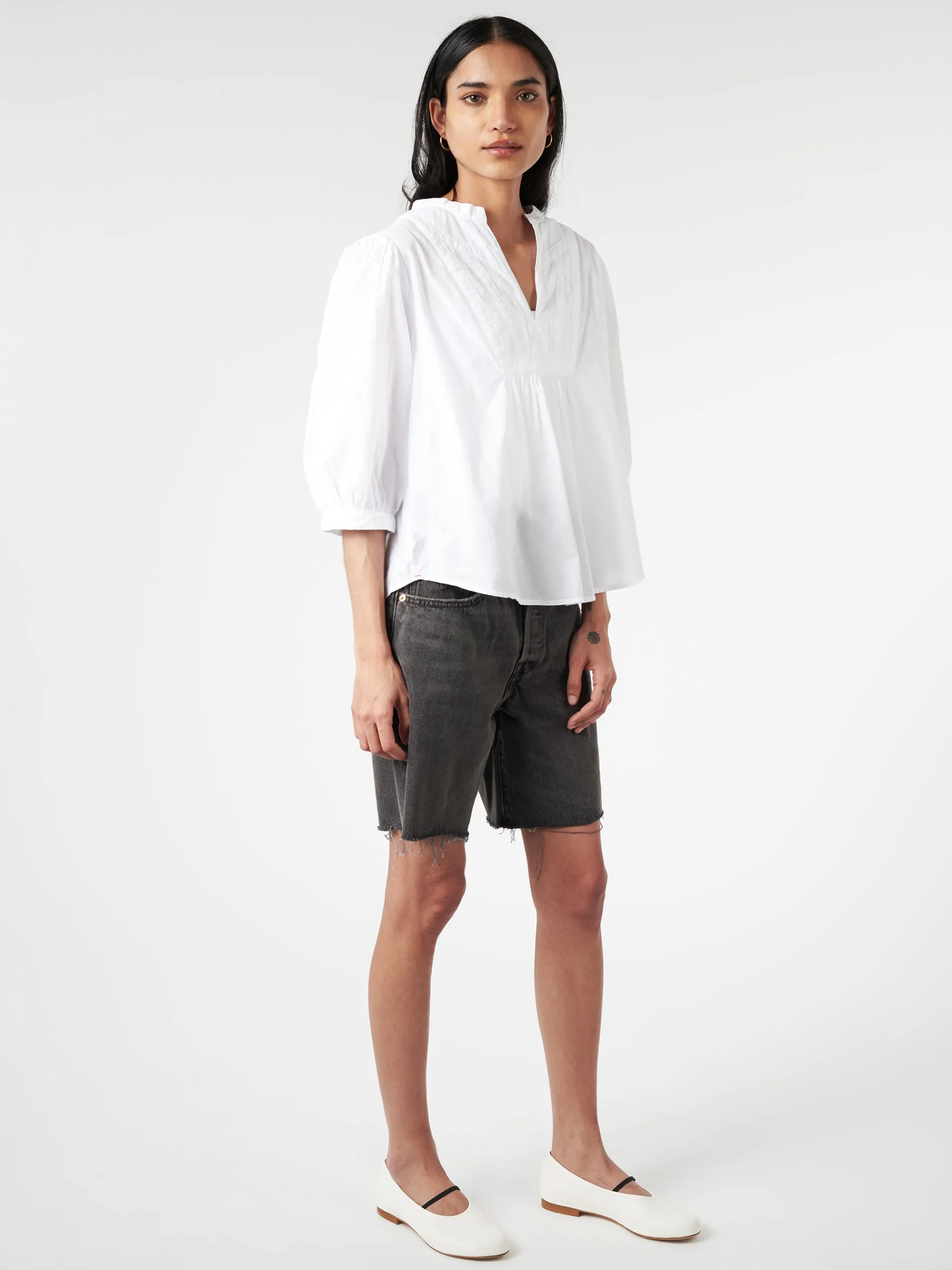 In classic lightweight woven cotton poplin for a lived-in look and feel, Xirena Lolo is a femme popover top.