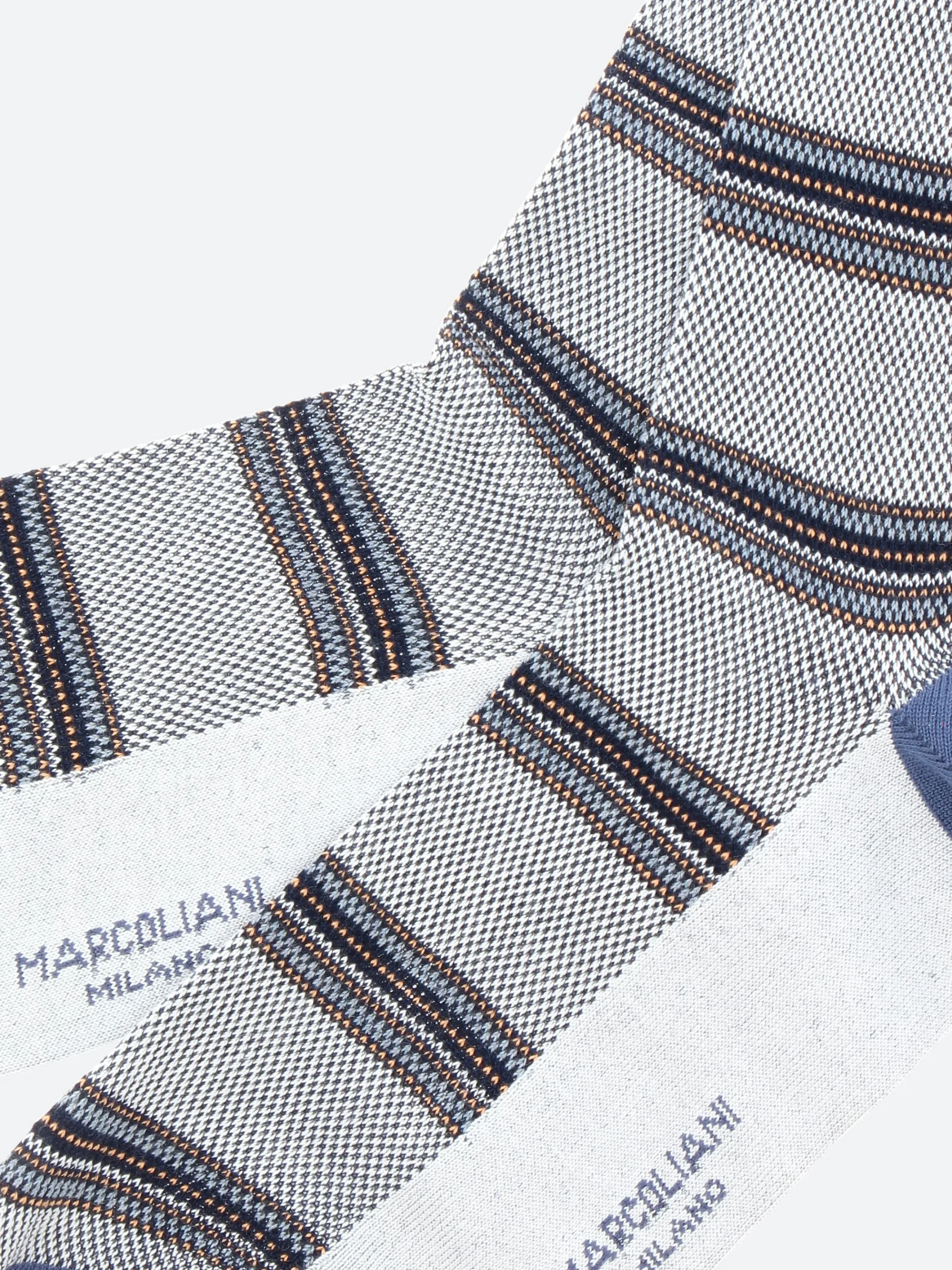 Stripes on a piqué texture for a tie design. In Pima Cotton, with its long, fine fibers, exceptionally soft and resistant.