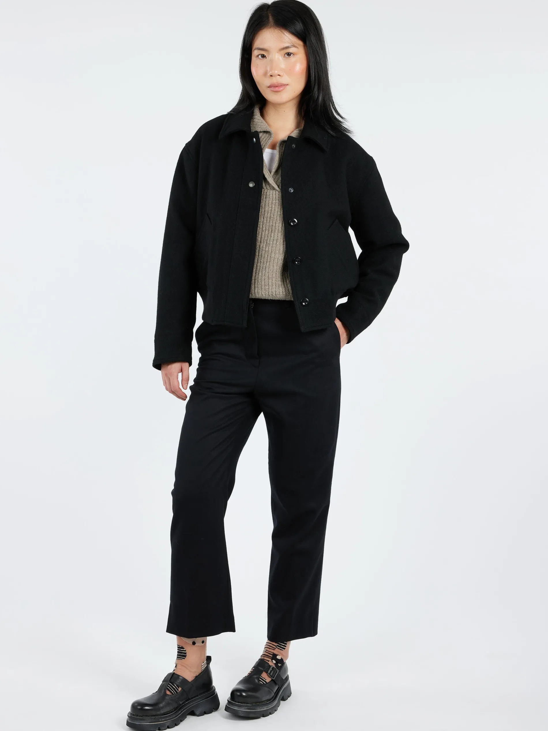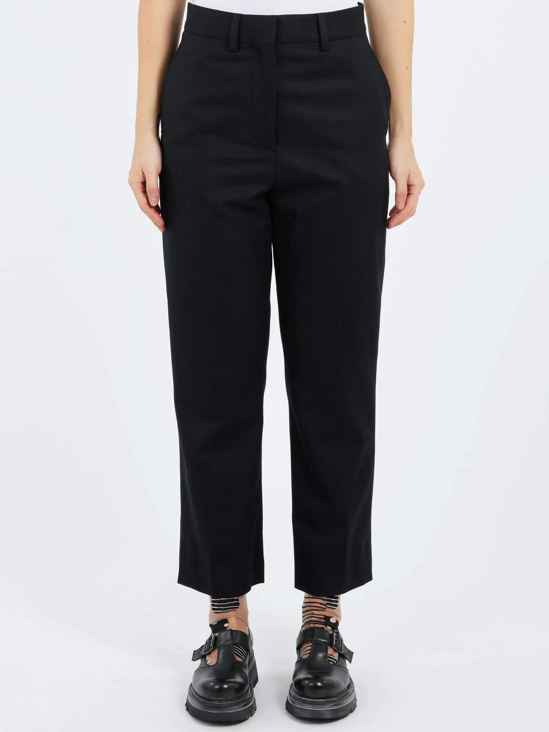 Margaret Howell midi waist crop trouser made from a dense Italian wool with a soft hand feel.