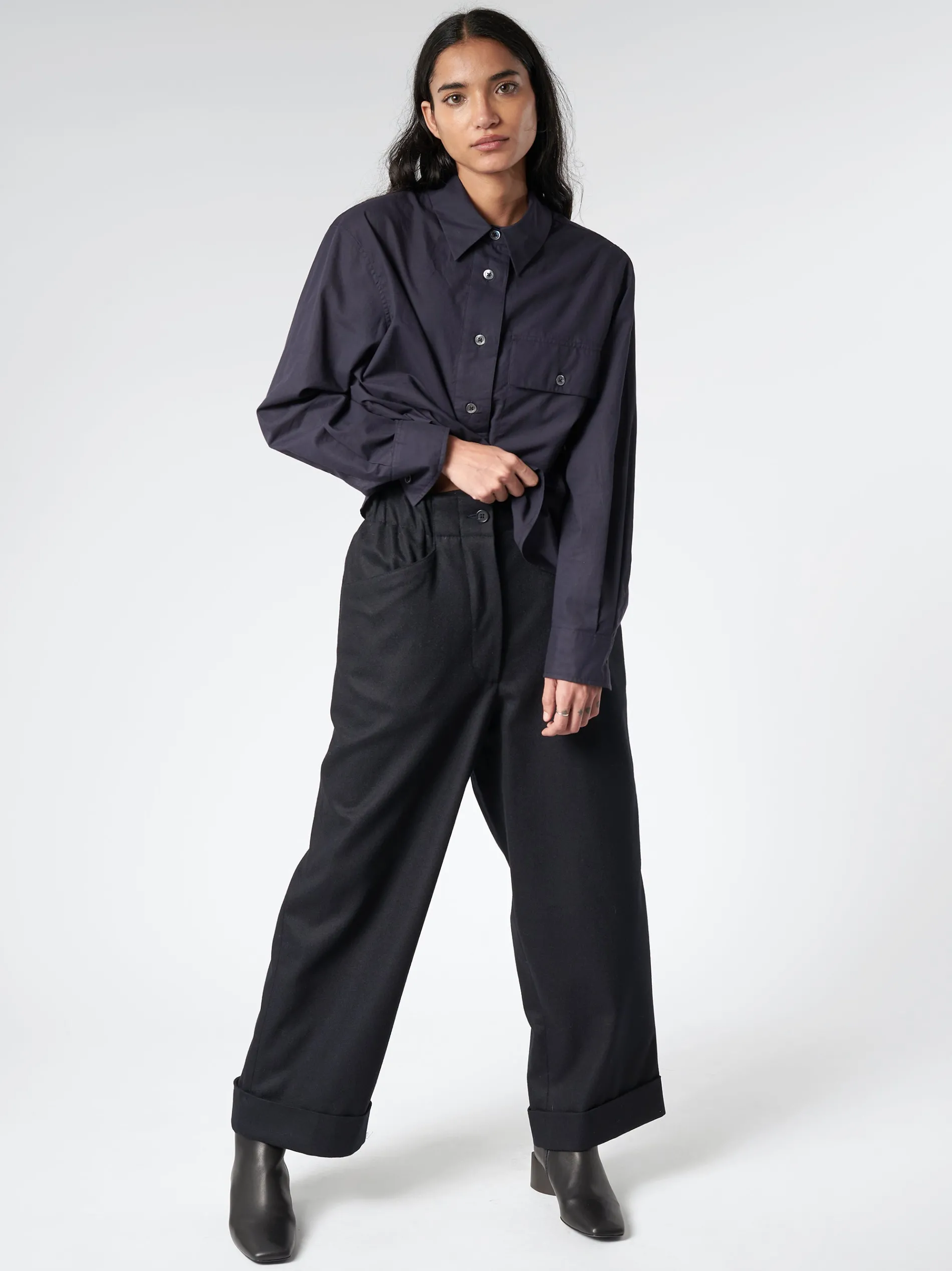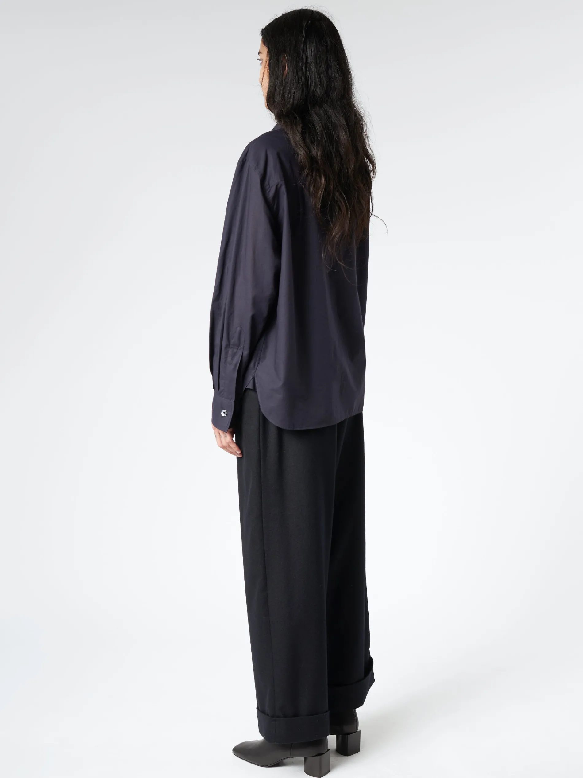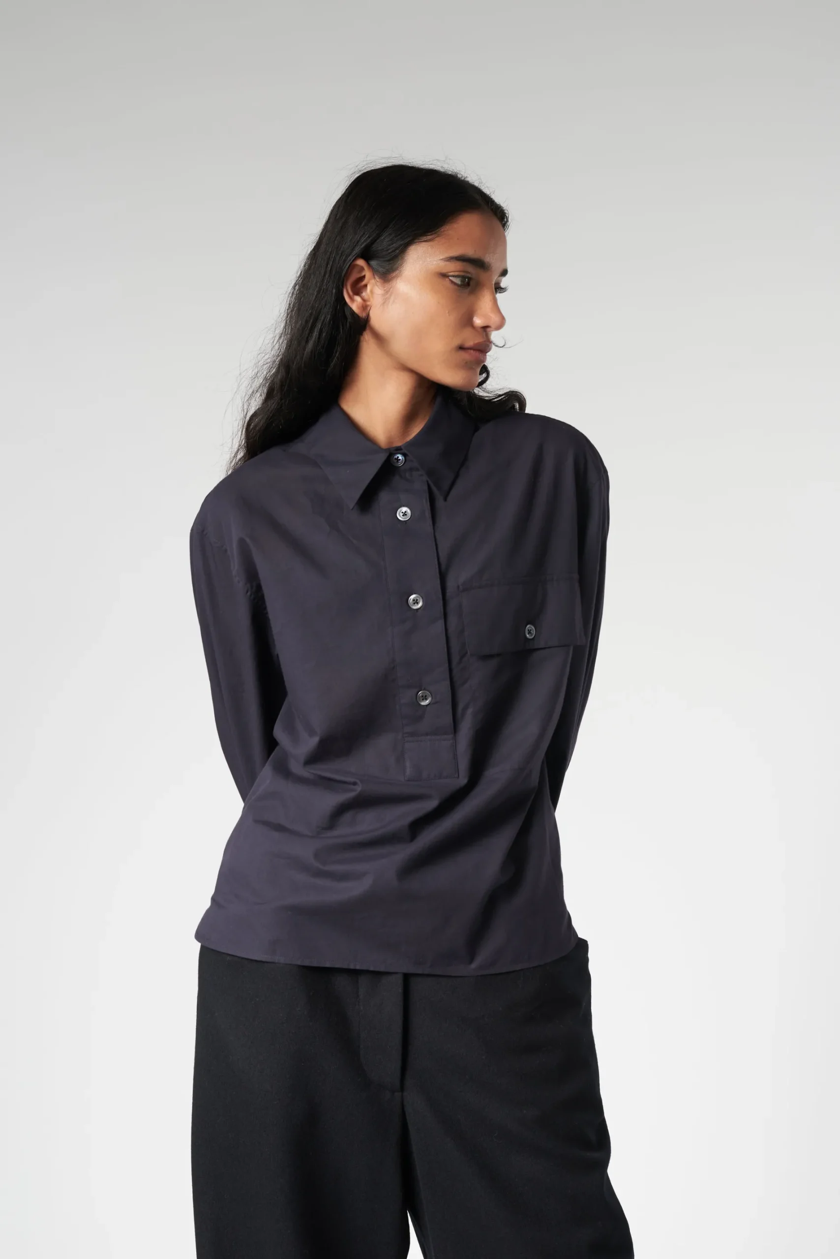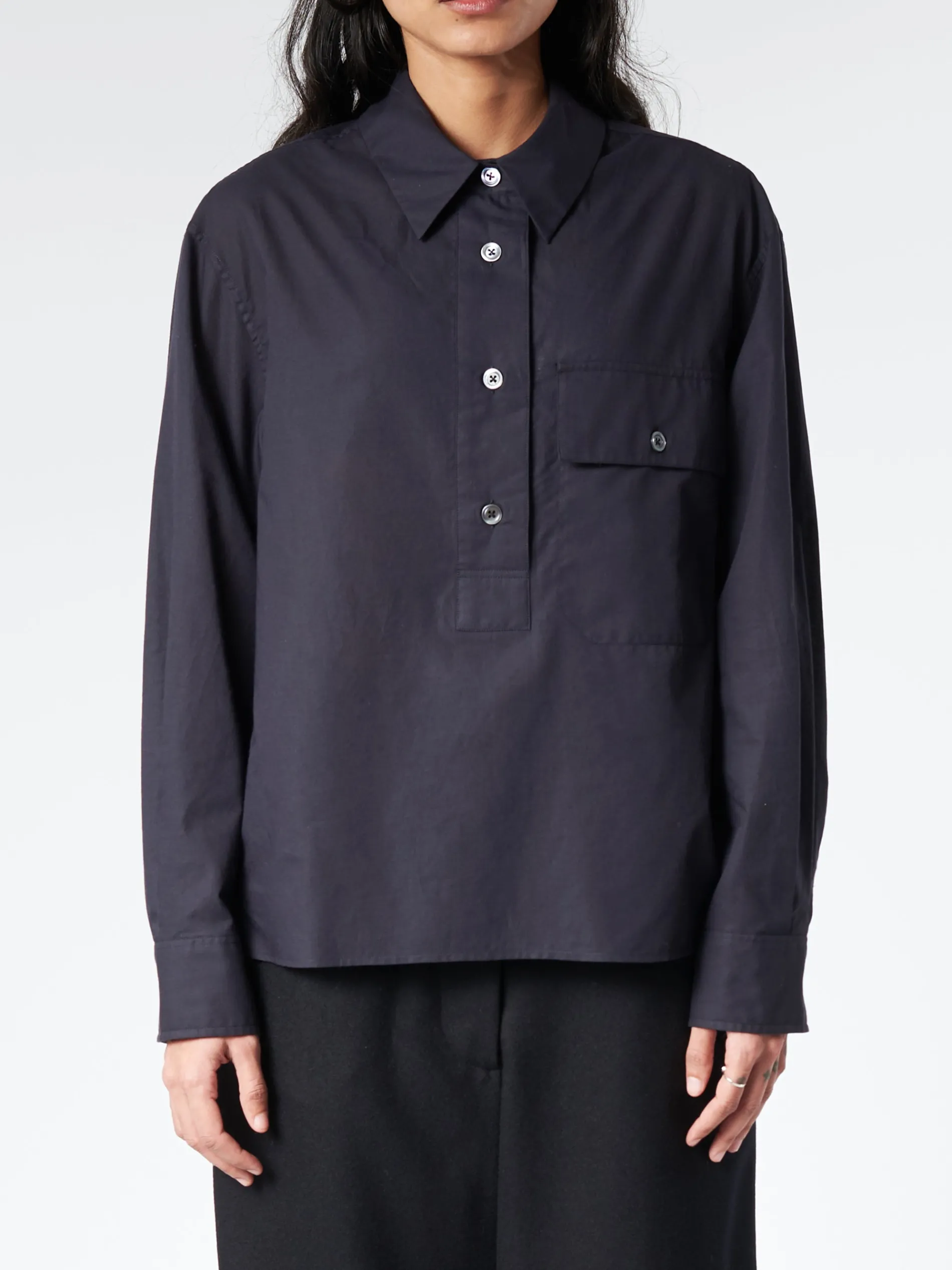 Margaret Howell lightweight washed cotton pullover shirt with an elongated back hem. Individually made in Margaret Howell’s London workroom.