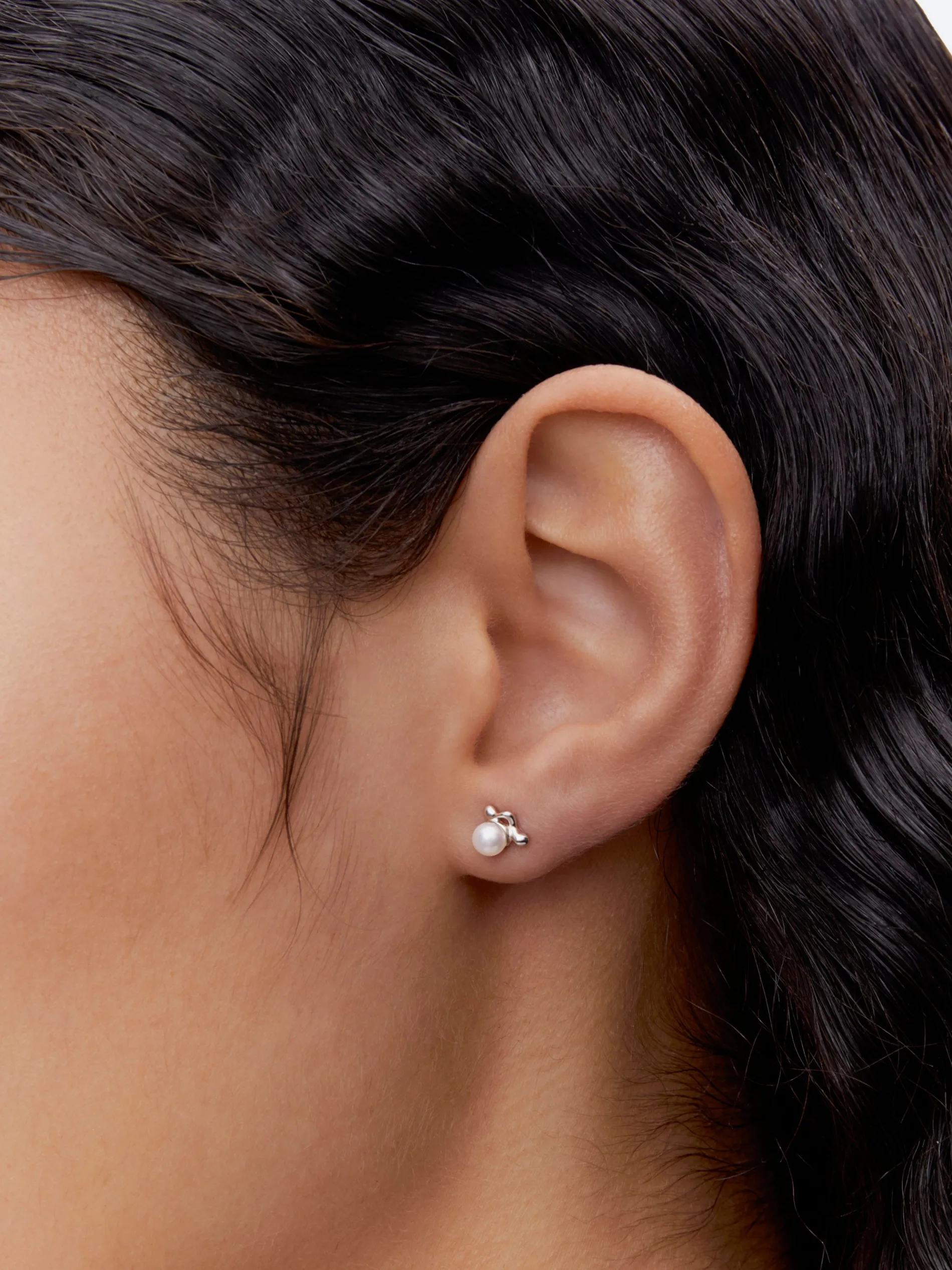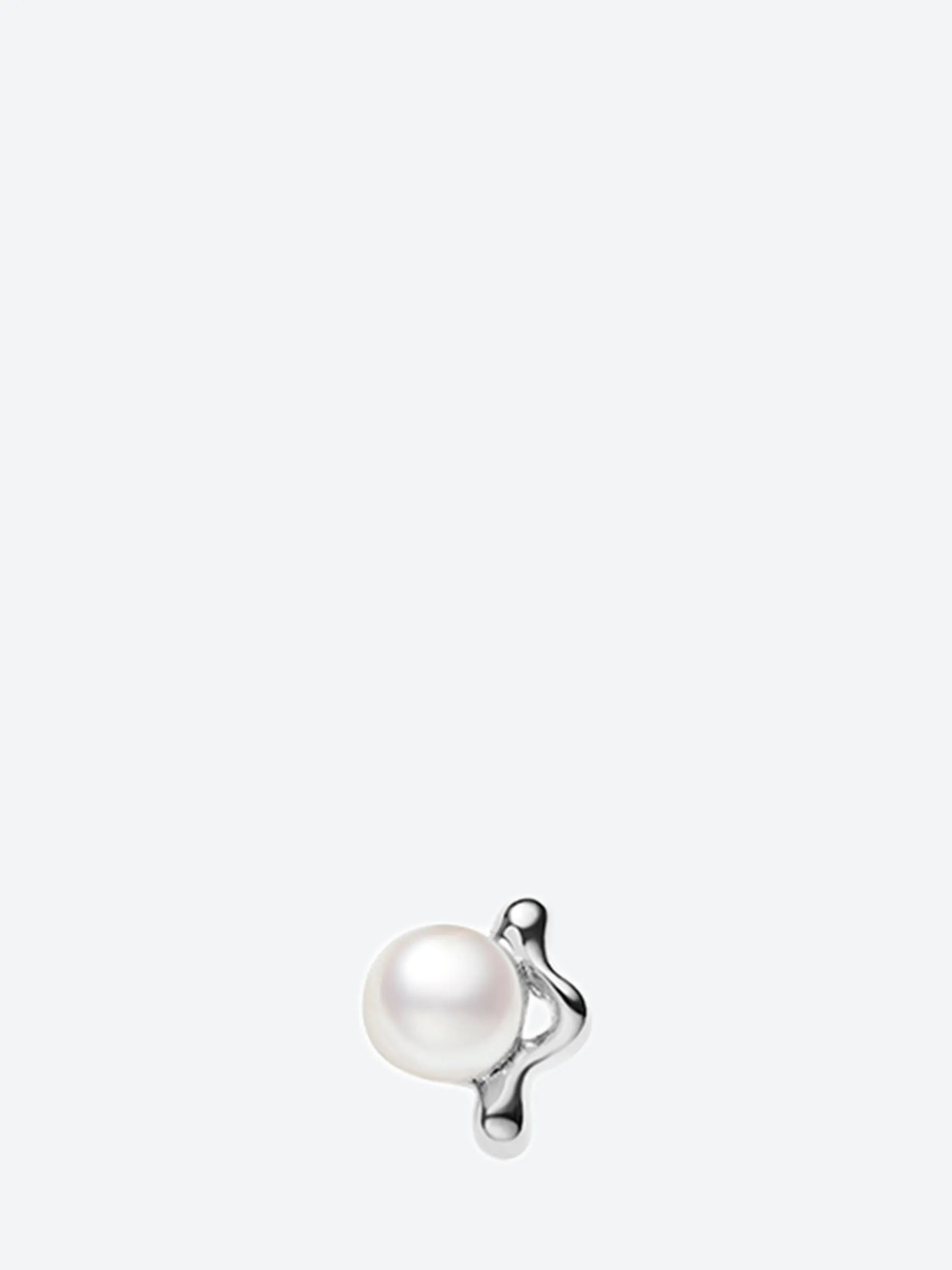 Stud earring with cultured freshwater pearl in a warped prong setting.