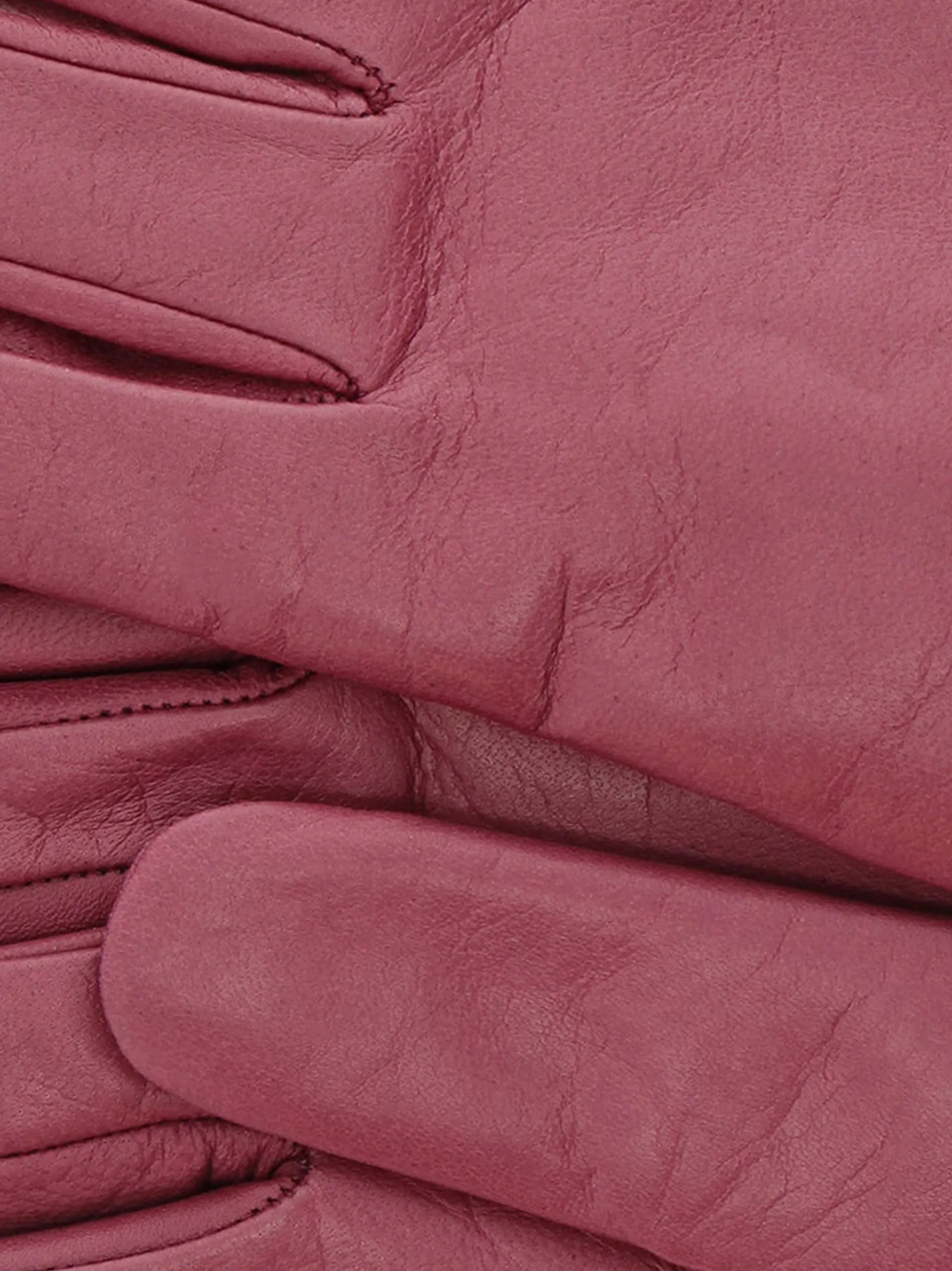 Women’s leather glove with soft-knit 100% cashmere lining and side opening on the wrist.