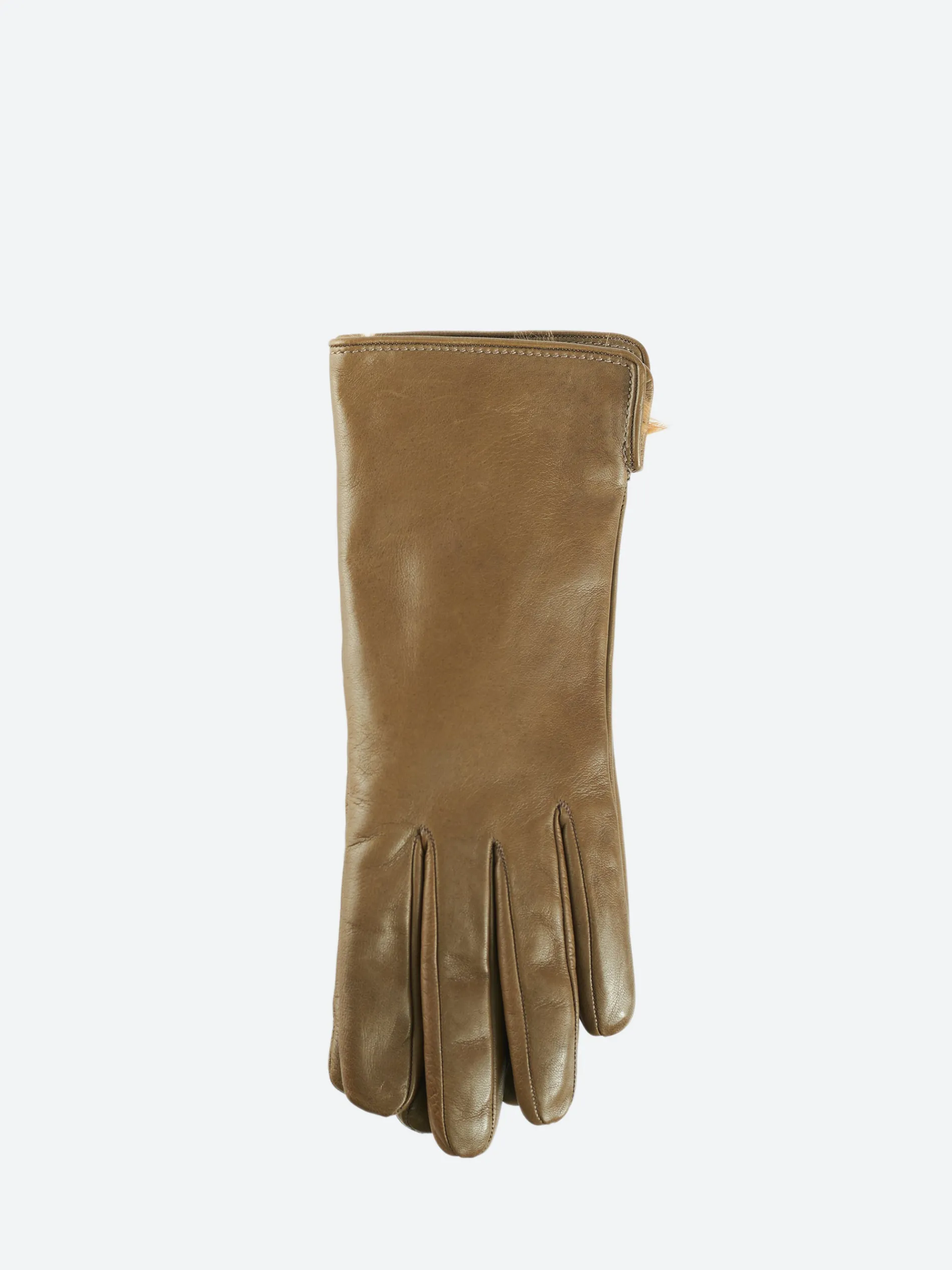 Women’s leather glove with soft-knit 100% cashmere lining and side opening on the wrist.