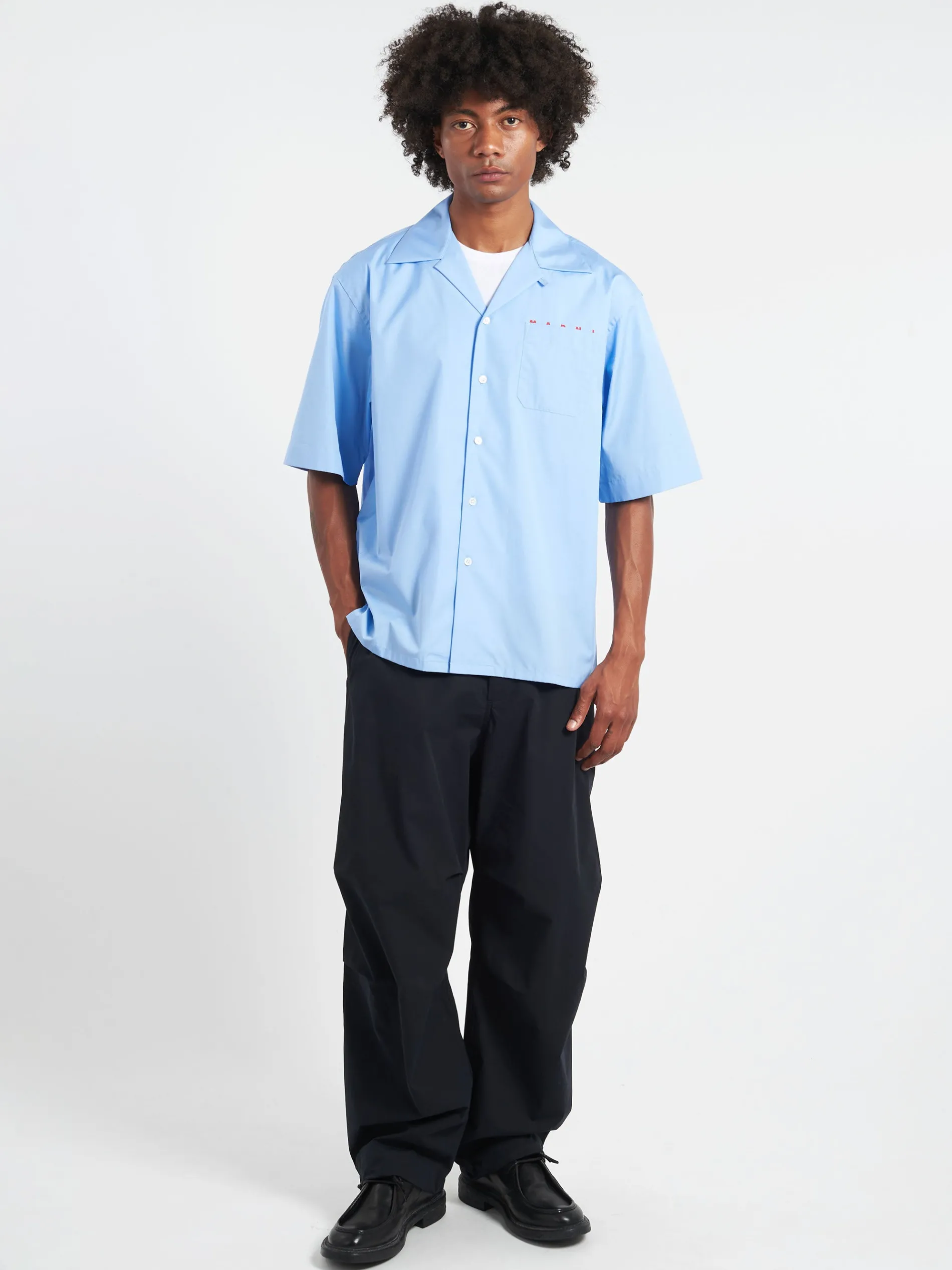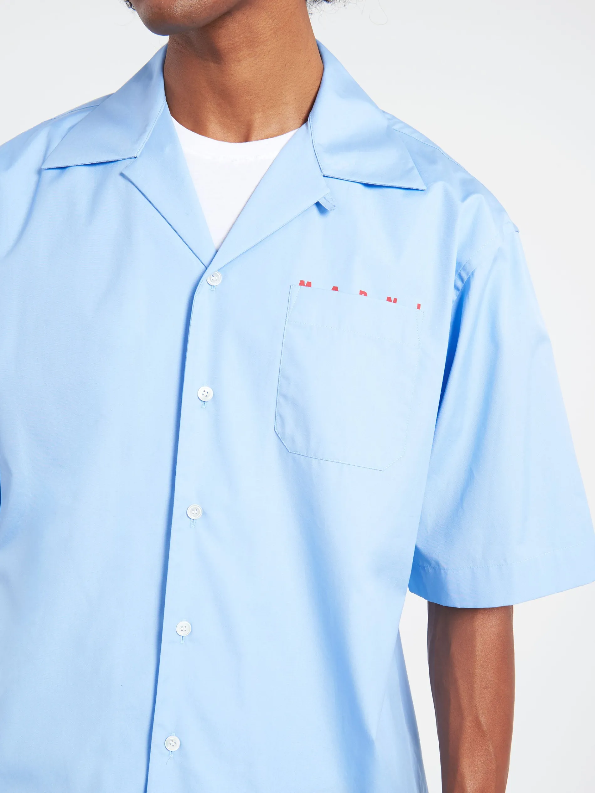 Short-sleeved bowling shirt made from organic cotton poplin. Detailed with a Marni logo poking out from behind the chest pocket.