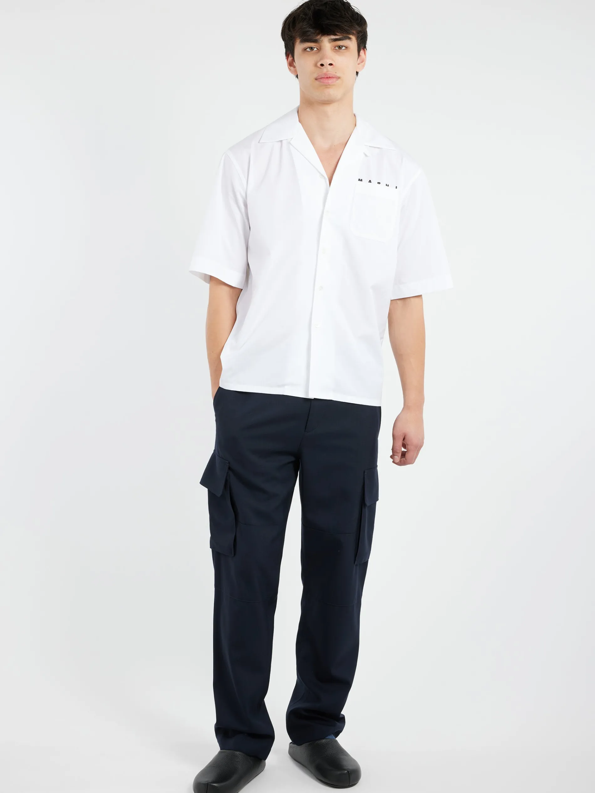 Short-sleeved bowling shirt made from organic cotton poplin. Detailed with a Marni logo poking out from behind the chest pocket.