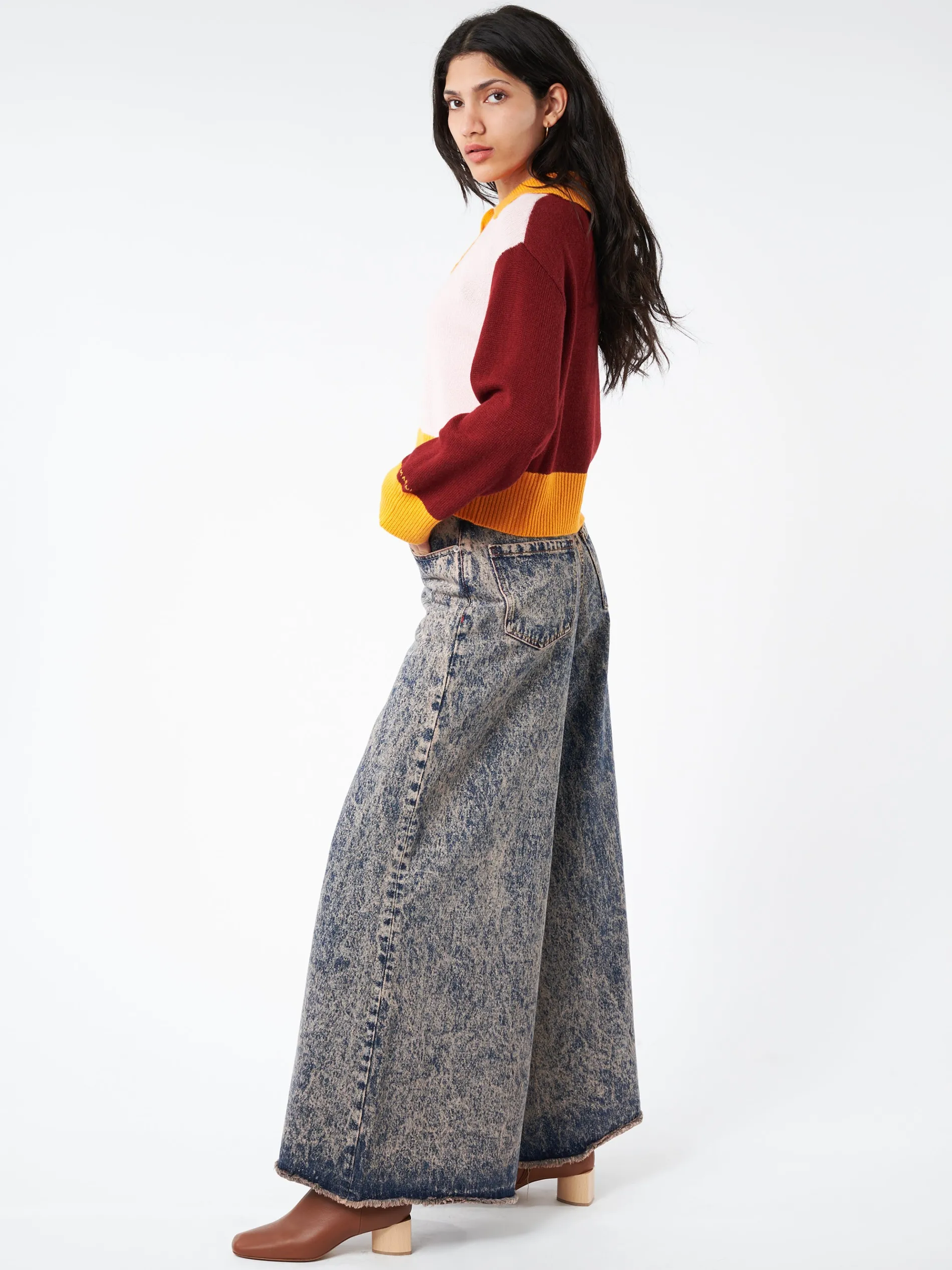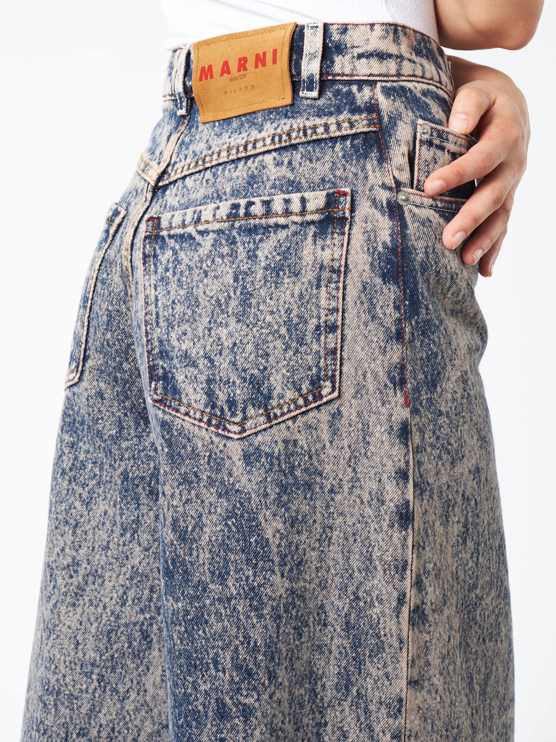 MARNI garment-dyed denim trousers with marble-effect wash.