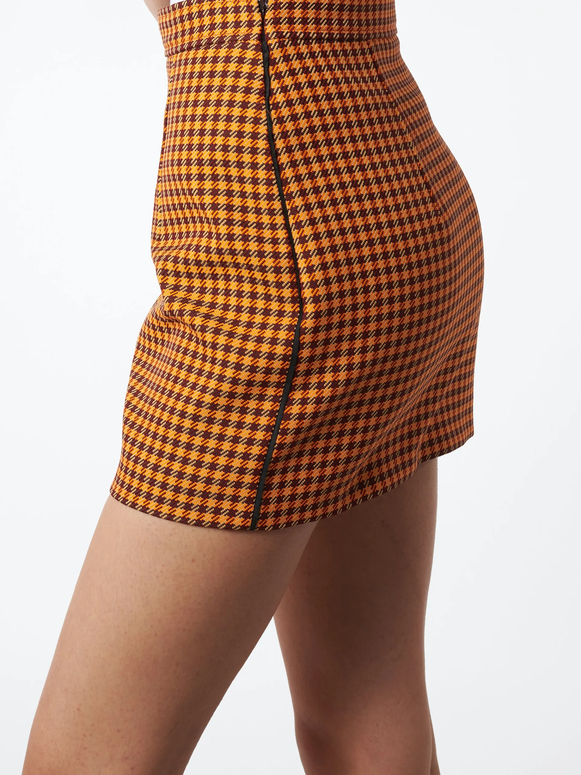 Marni mini skirt in a yarn-dyed check and finished with satin piping throughout.
