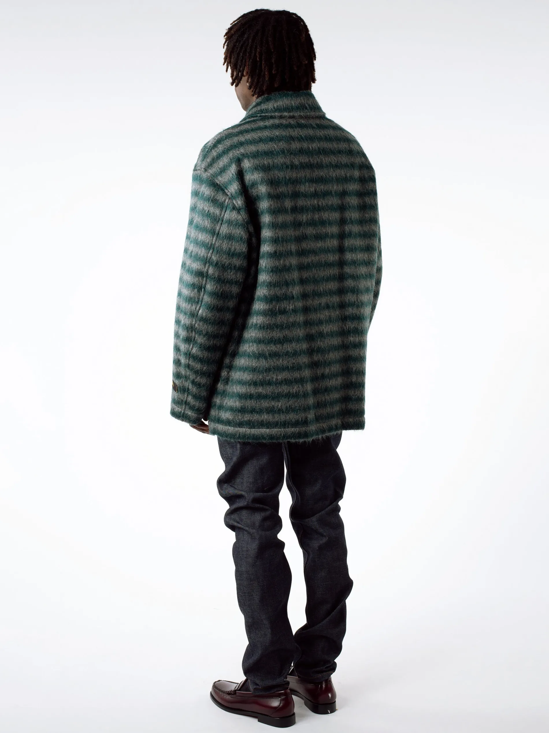 Marni single-breasted button-up trench coat in a brushed mohair with multicolour stripes.