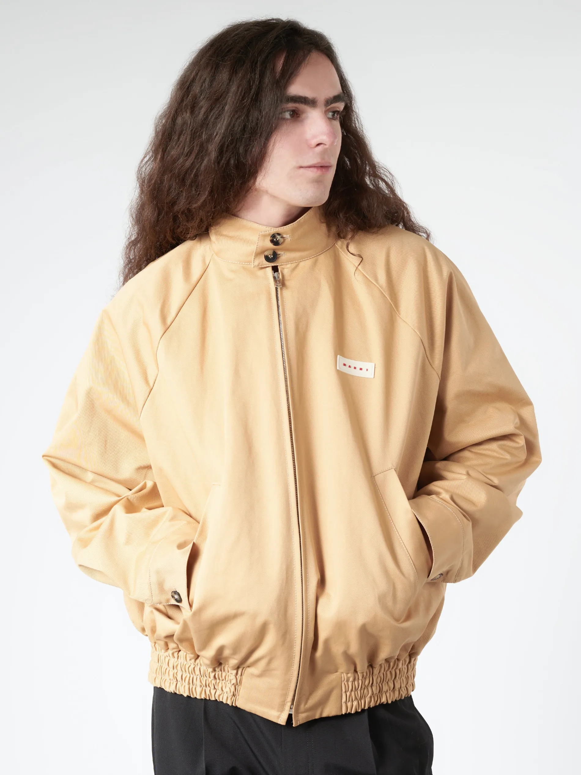 An organic cotton gabardine bomber jacket that offers an oversized fit and raglan sleeves, making it perfect for added comfort and mobility. Complete with slant pockets and a gummy Marni patch on the chest.