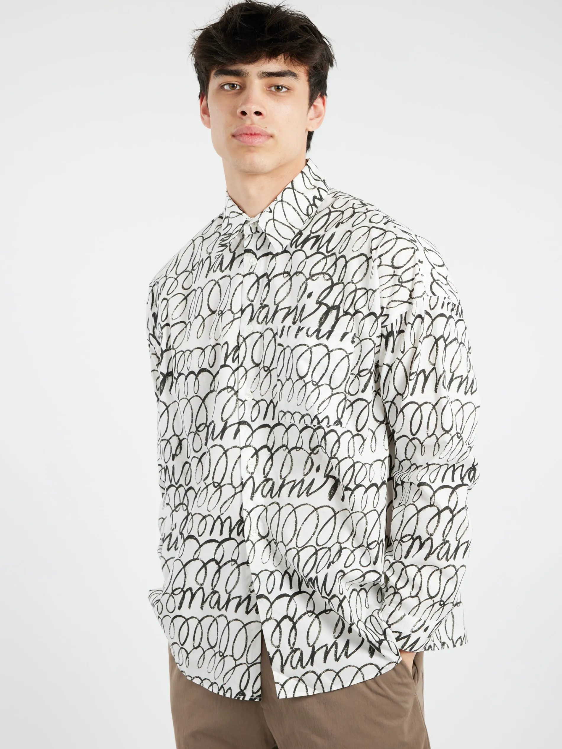 Long-sleeved shirt made from cotton poplin. Embellished with a scribbled Marni logo print throughout.