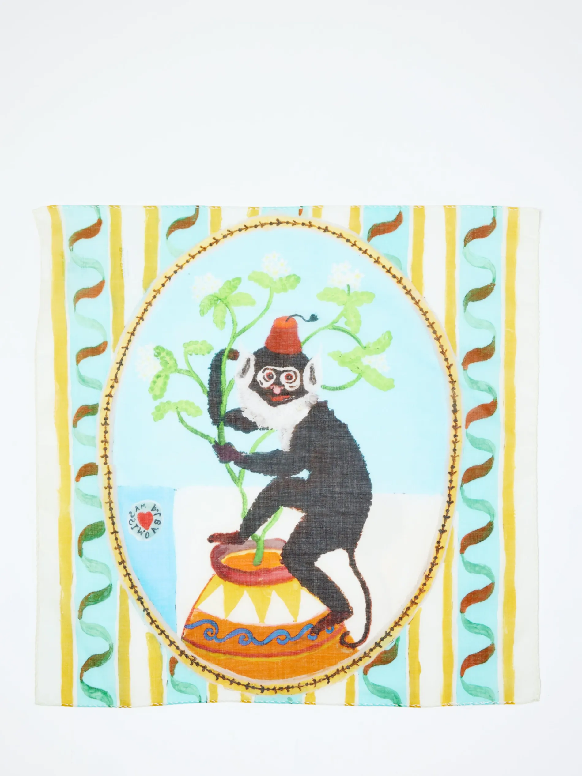 Cotton voile handkerchief featuring print by artist Roberto Longo alias Roberto di Alicudi.