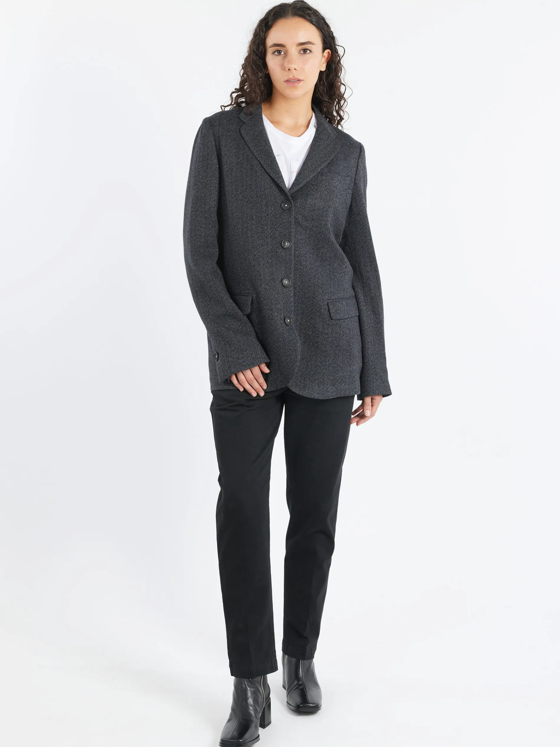 - Welt pockets at the back