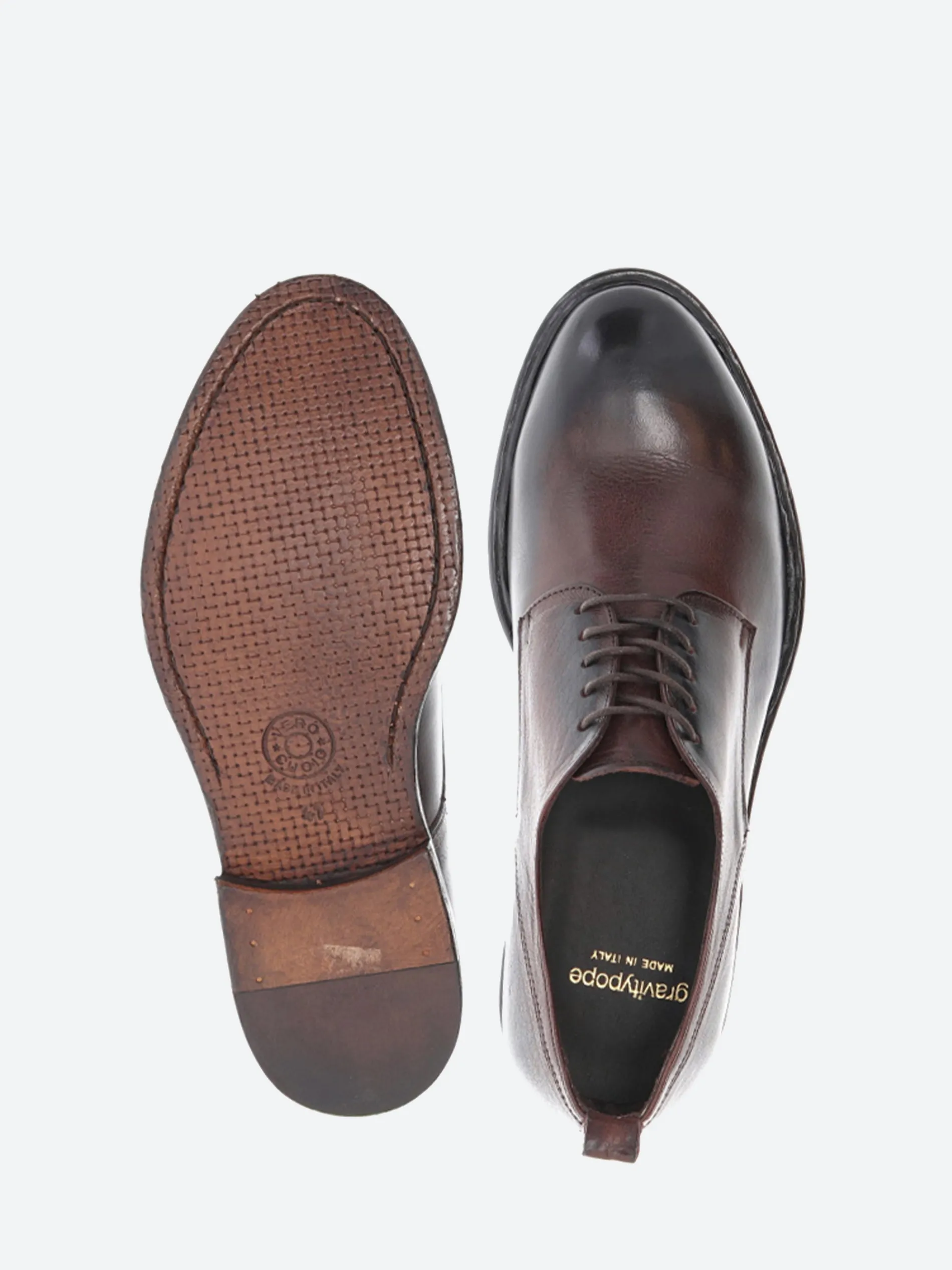 gravitypope Matteo lace-up derby in polished leather. Stitched sole and handcrafted in Italy.