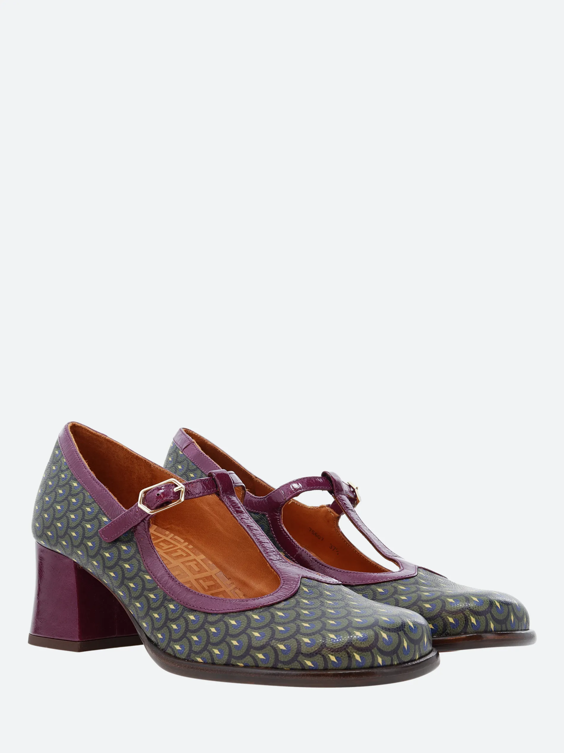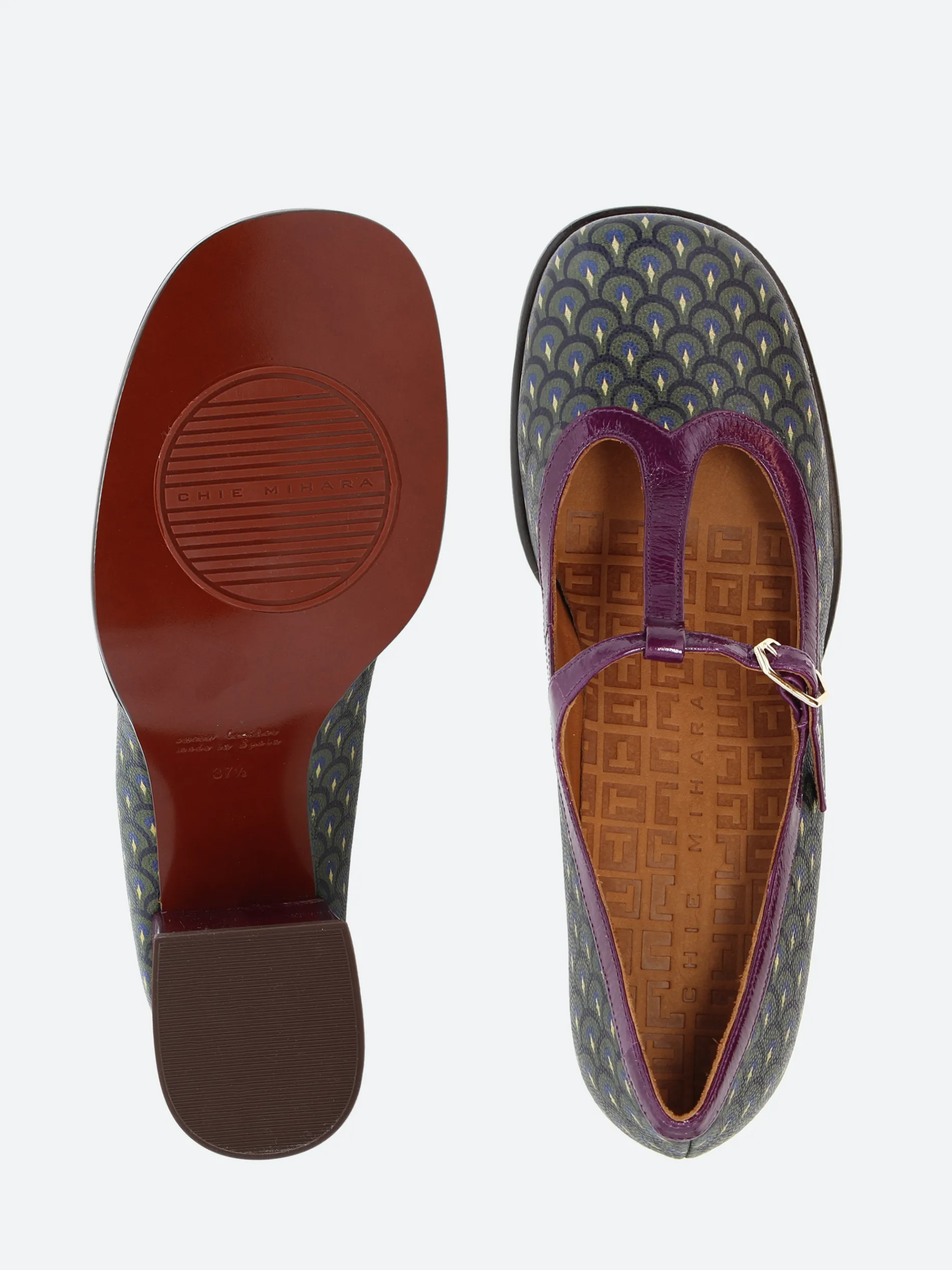 Chie Mihara Melka, a T-bar strapped shoe with a soft leather upper, sitting on a high, stacked heel.
