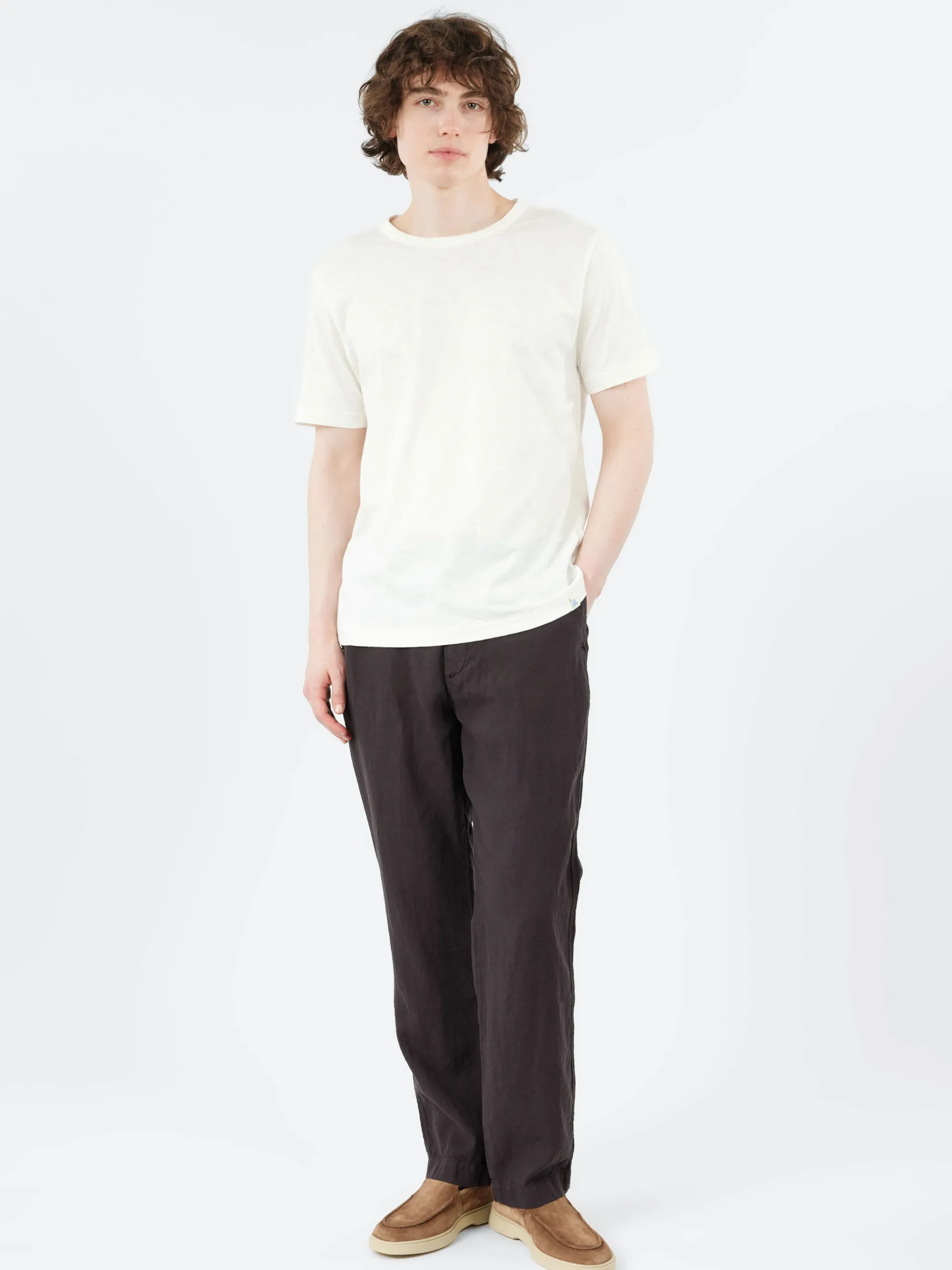 A relaxed-fit crew neck t-shirt that looks great, breathes well and feels ultra-soft on the skin. Perfect for the warmer months, this t-shirt is made with a 4.9 oz light slub Pima cotton.