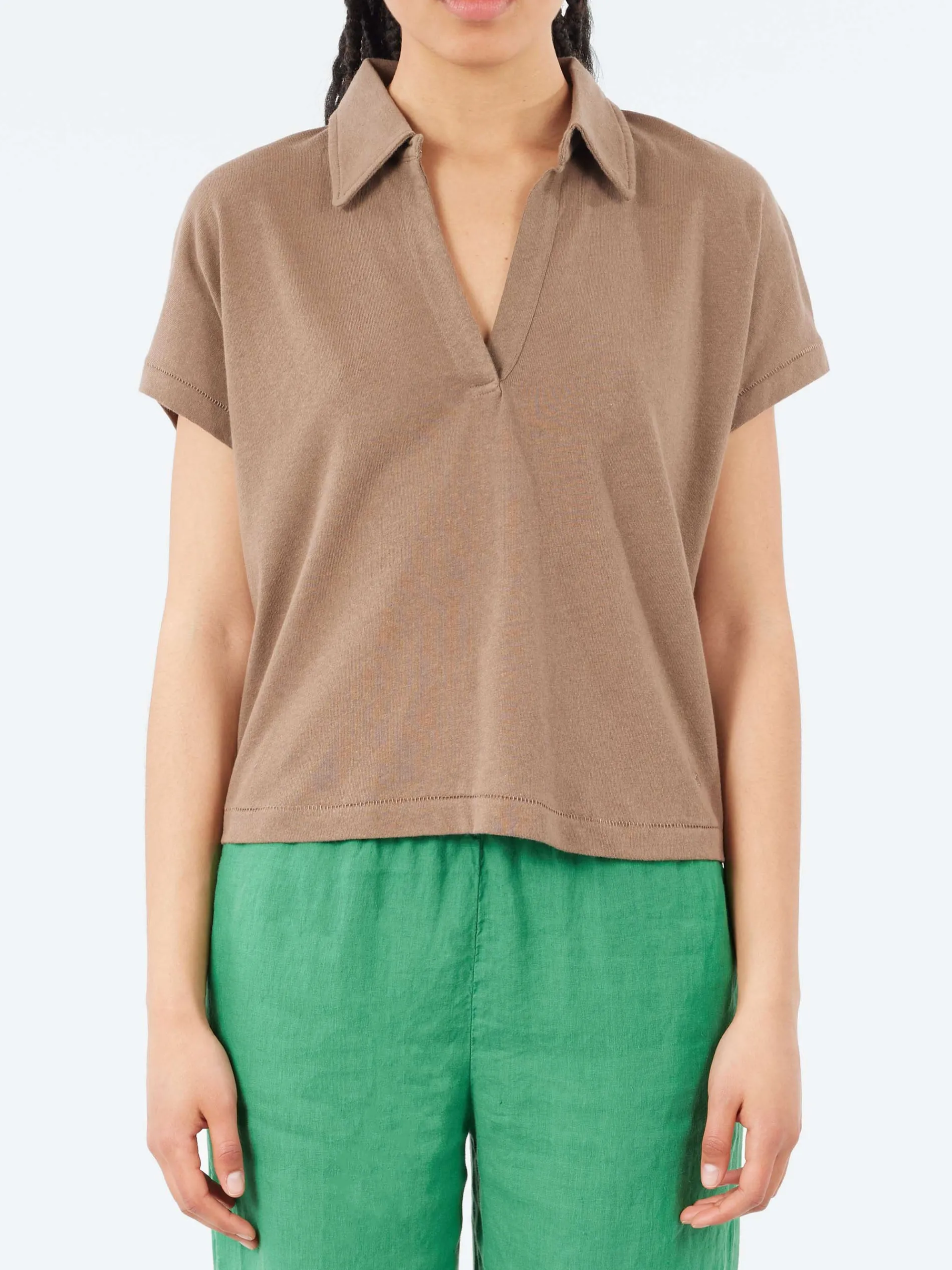 In time for summer, this polo shirt is made with a 50/50 blend of linen and organic cotton. A perfect choice for the warmer seasons to come, this sleeveless t-shirt has a relaxed fit and a polo neckline that will help you feel cool and comfortable even on the hottest days.