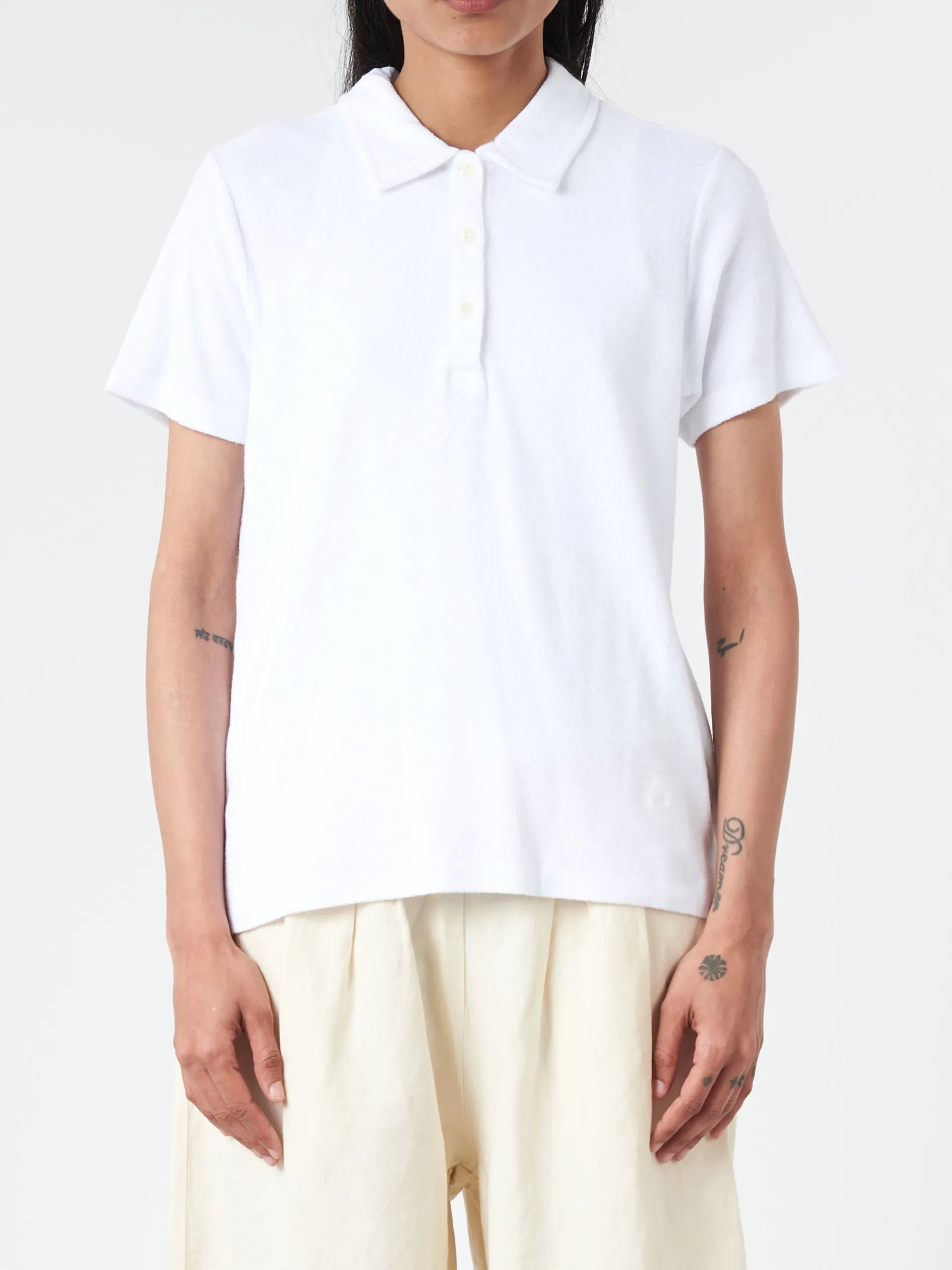 Merz b. Schwanen polo shirt made of their new all plant-based Terry material – meaning that every component of this piece is crafted and derived from renewable plant sources, making it the ultimate sustainable choice.