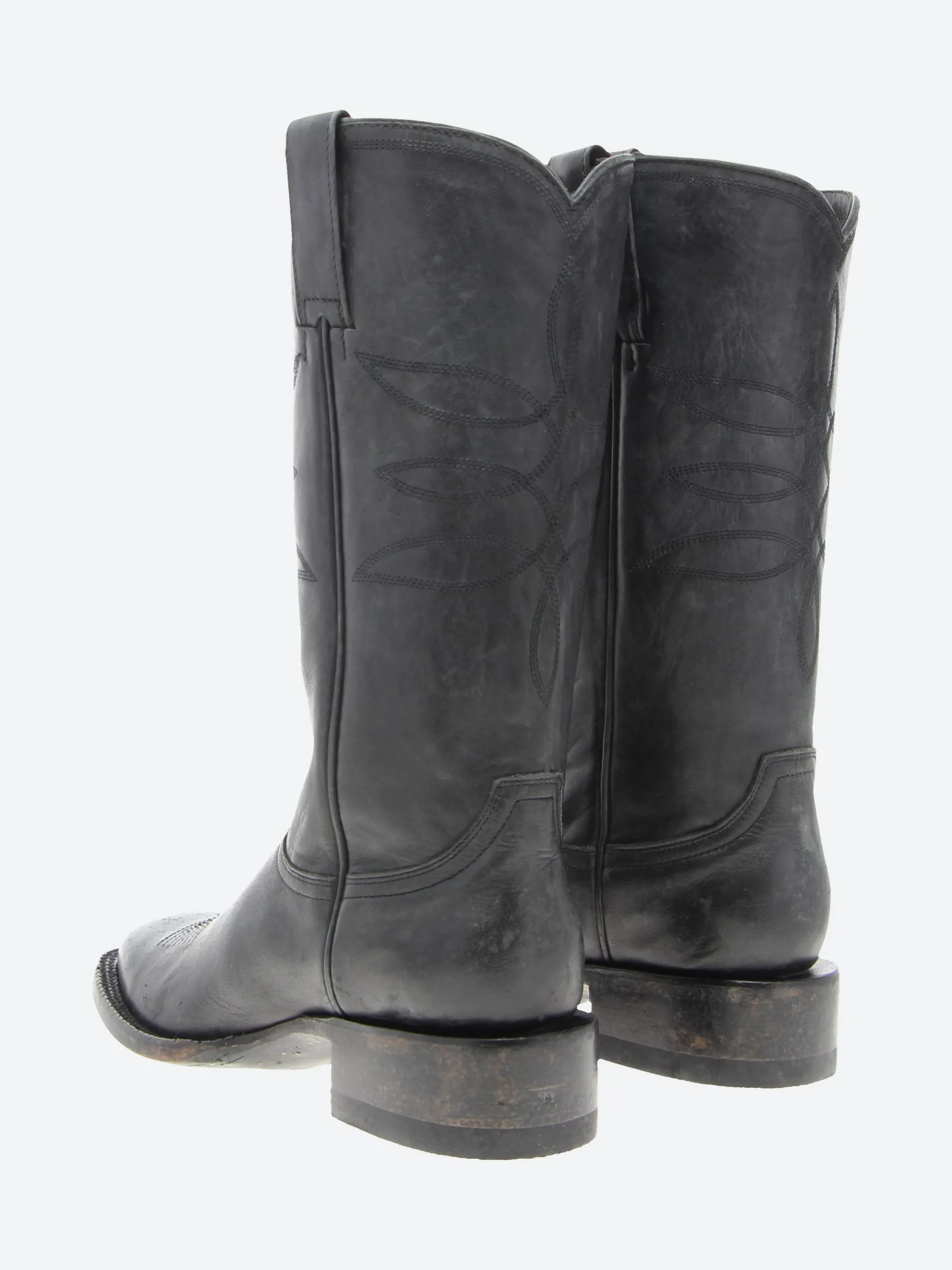 Mexicana tall boots with squared toes in aged black leather.