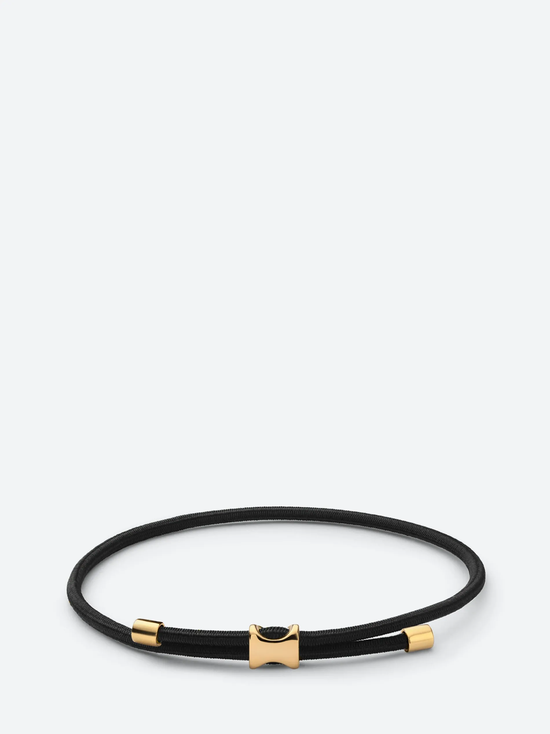 The hardware-inspired Orson Pull Rope Bracelet features a hand-casted sterling silver flat bead strung onto a bungee cord. Adjustable in size for an easy to wear staple piece.