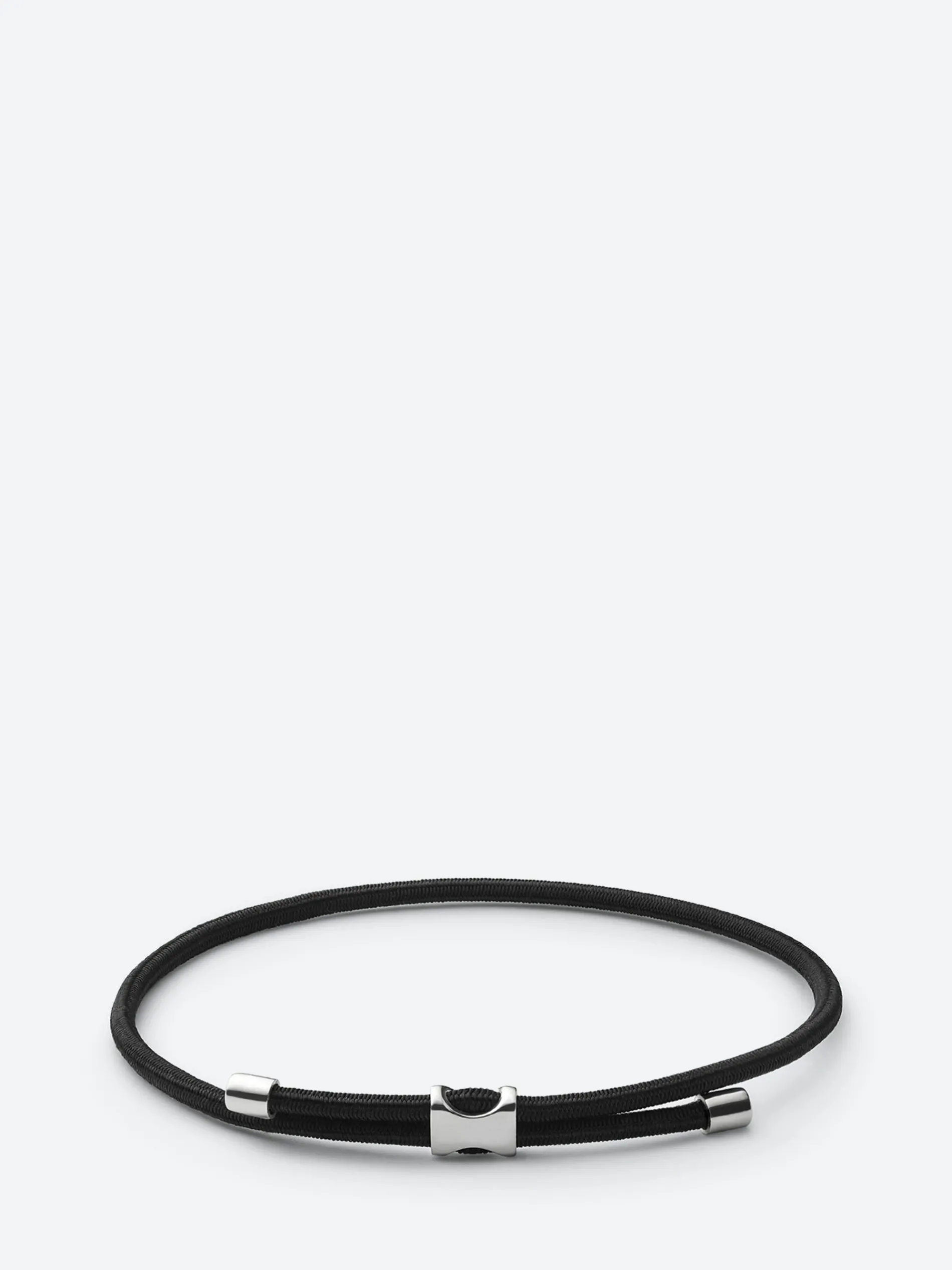 The hardware-inspired Orson Pull Rope Bracelet features a hand-casted sterling silver flat bead strung onto a bungee cord. Adjustable in size for an easy to wear staple piece.