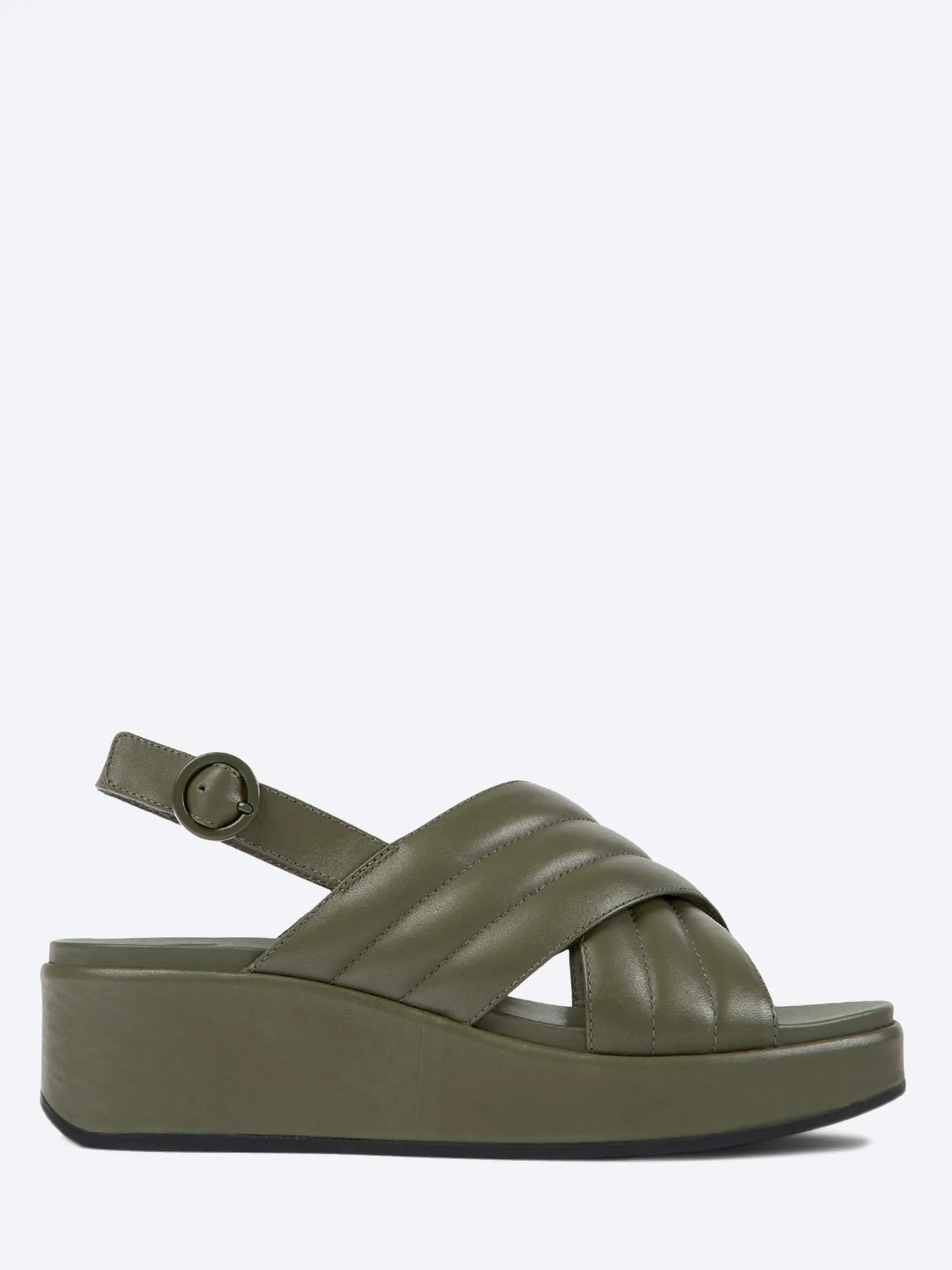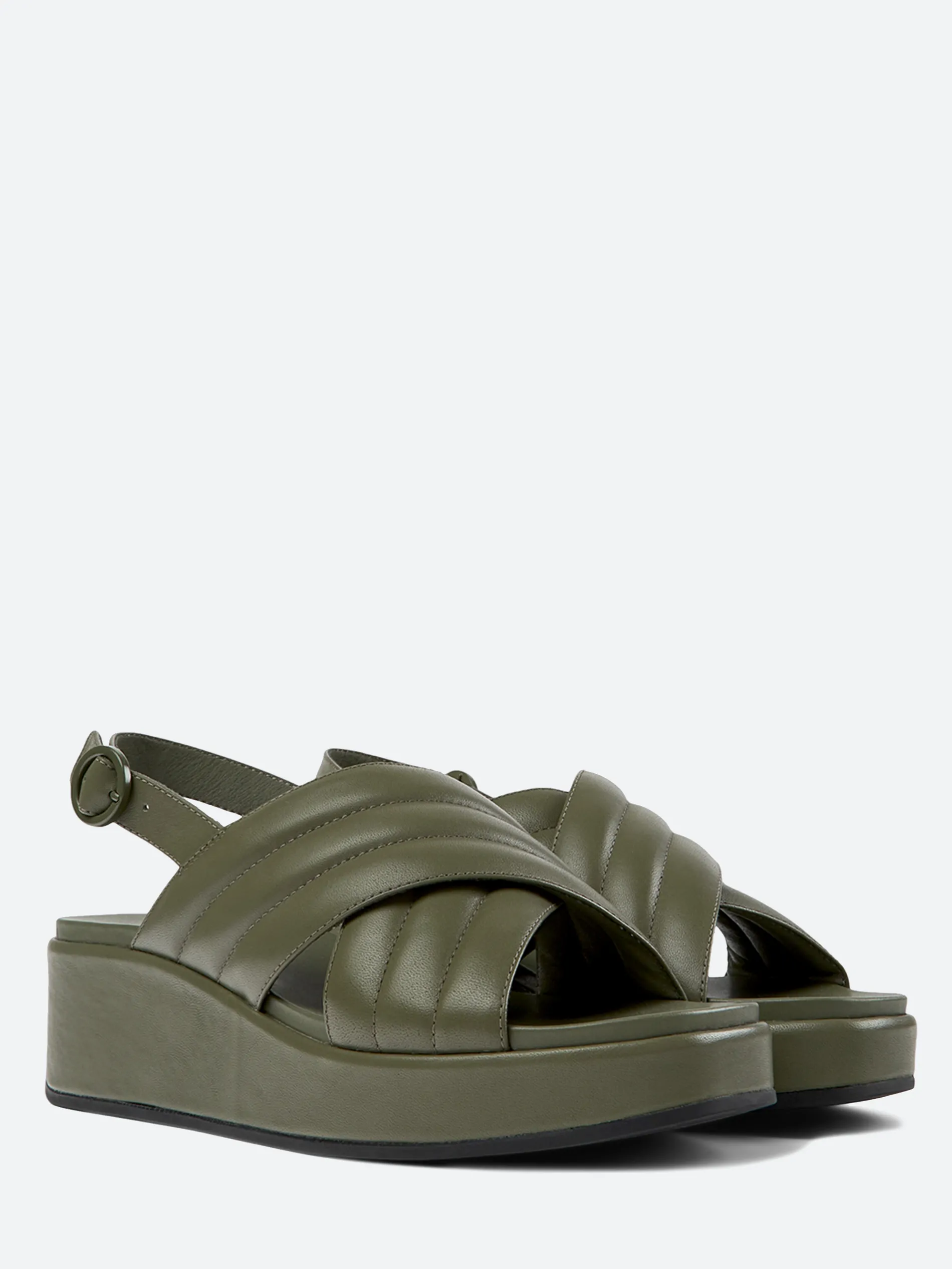 Camper Misia women’s flatform sandals are cushioned platforms that offer a stable height and a sophisticated silhouette wrapped in soft and elegant monochrome leather.