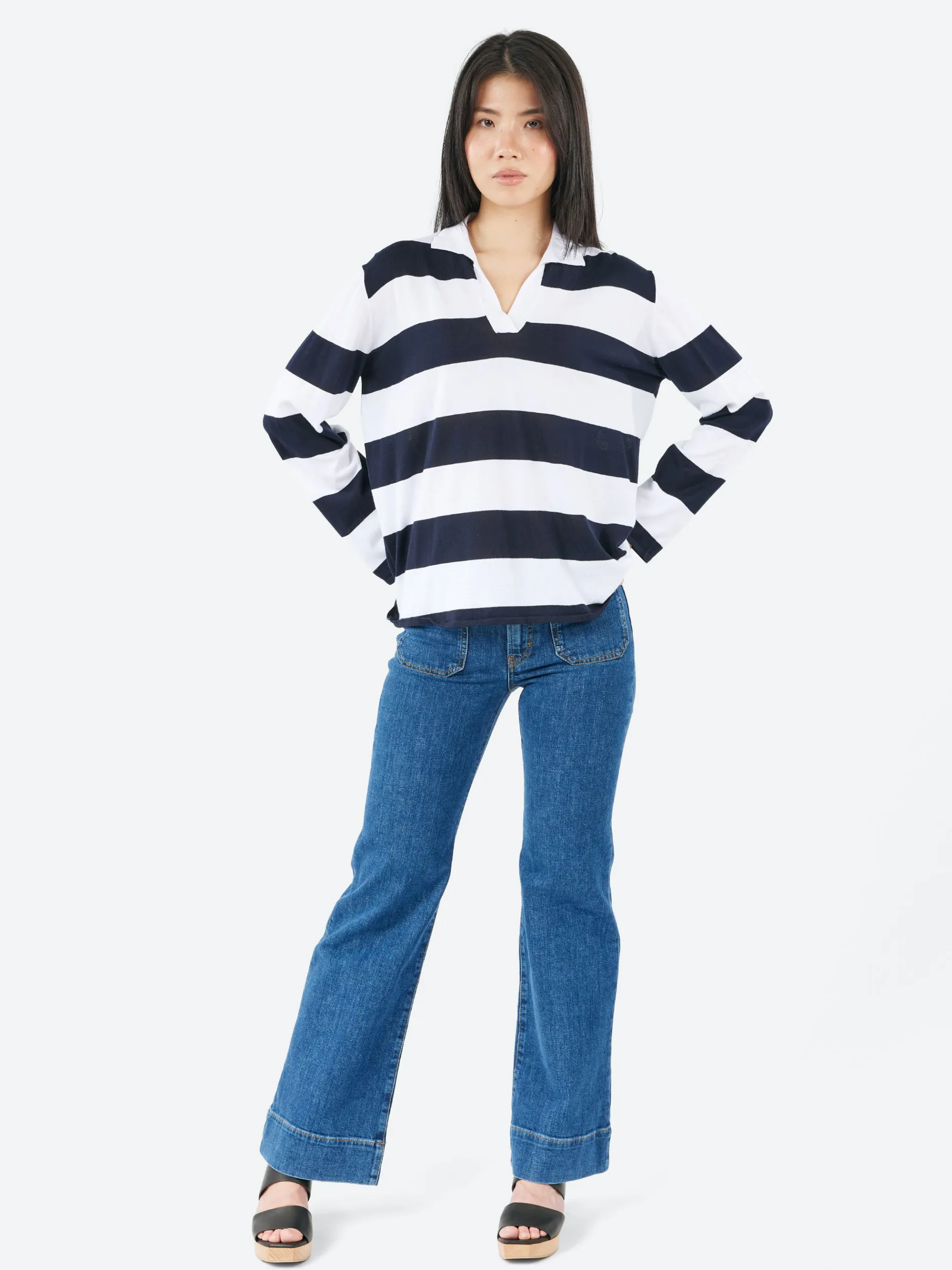 The MJ Watson polo is a refined and versatile piece crafted in Italy from 100% cotton. This polo offers exceptional softness and breathability, making it ideal for transitional layering. It features a classic polo silhouette enhanced by a subtle striped pattern, adding visual interest while maintaining a timeless look.