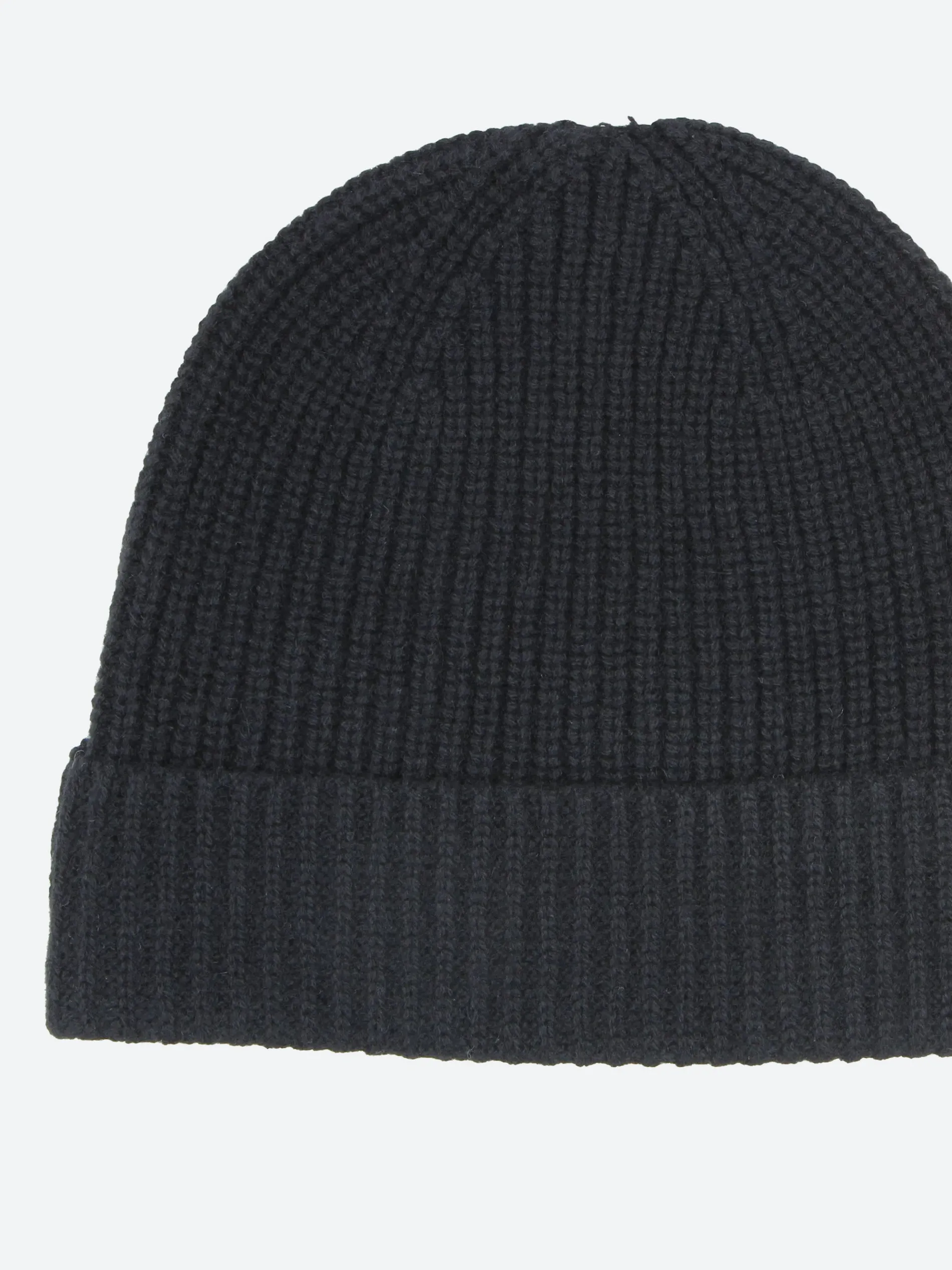 Knit beanie features ribbed detailing, crafted from extrafine merino wool.