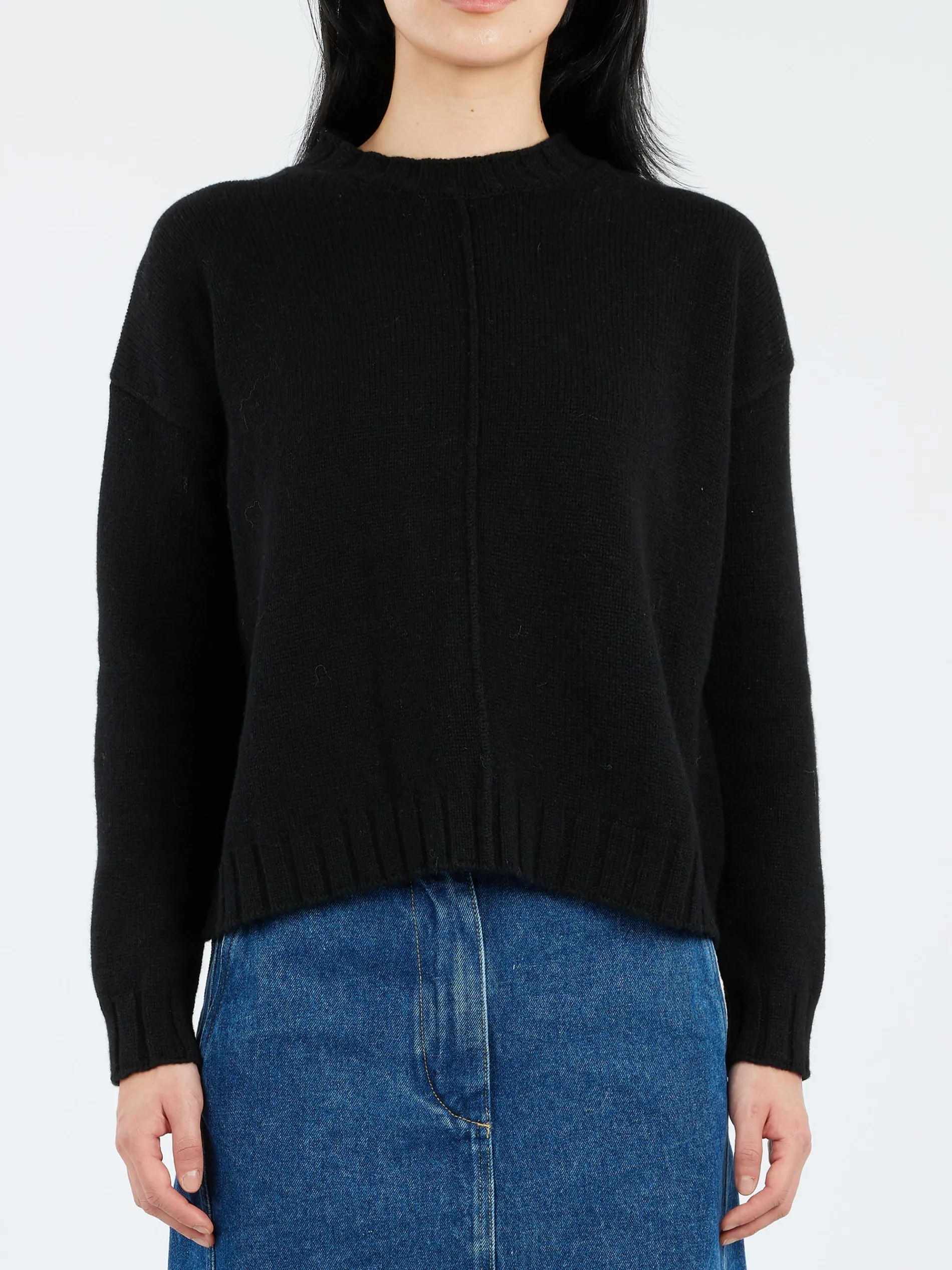 MJ Watson cashmere blend sweater features a decorative raised center seam and a thick, ribbed hem.