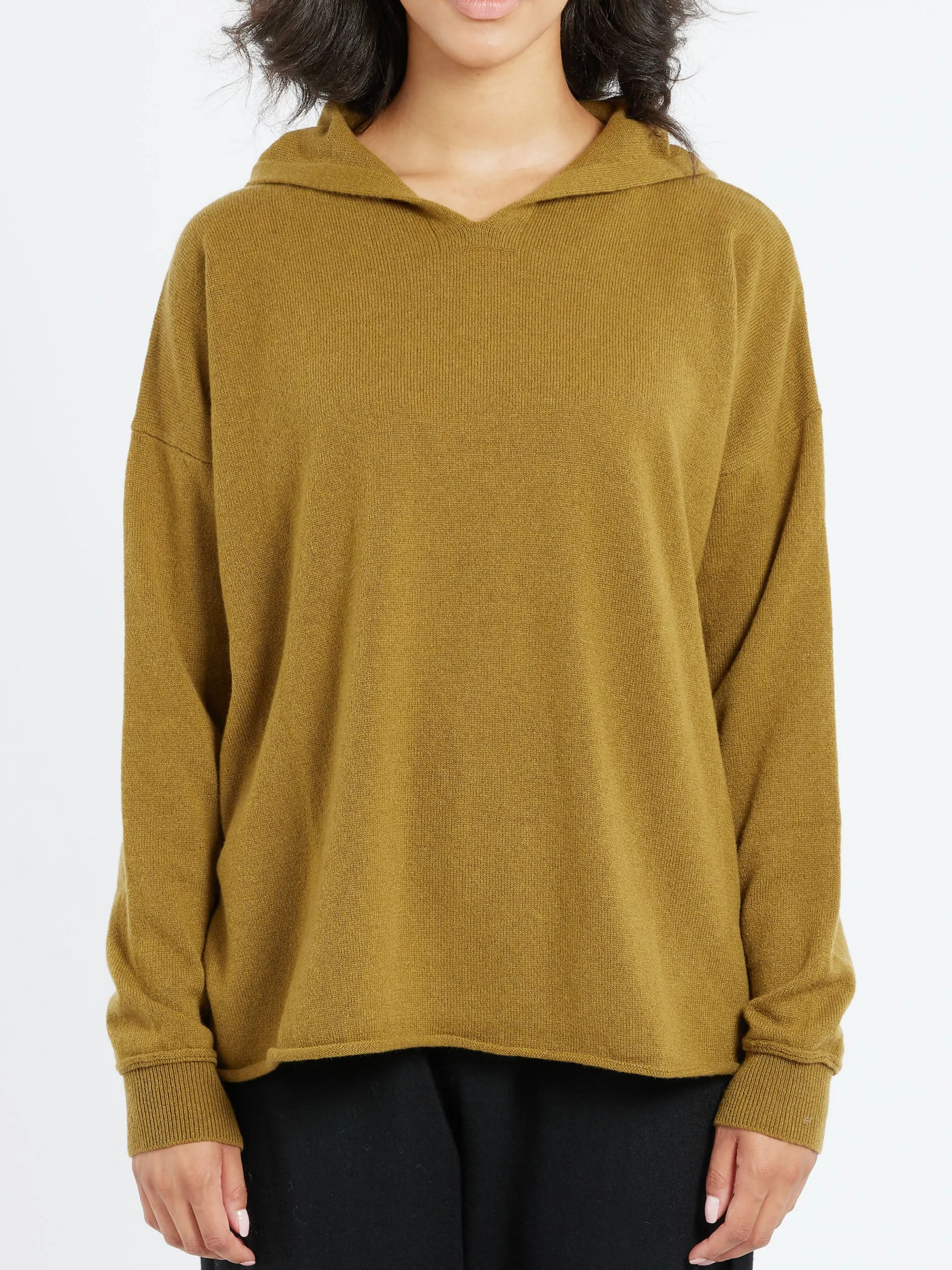 MJ Watson cashmere hoodie features fully fashioned armholes and a skinny rolled hem.