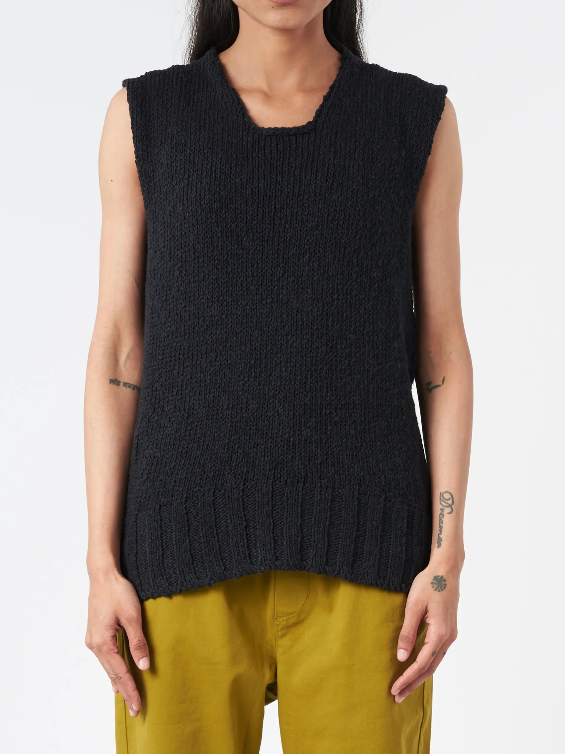 MJ Watson chunky knit vest that’s lovely to layer over a t-shirt or blouse.