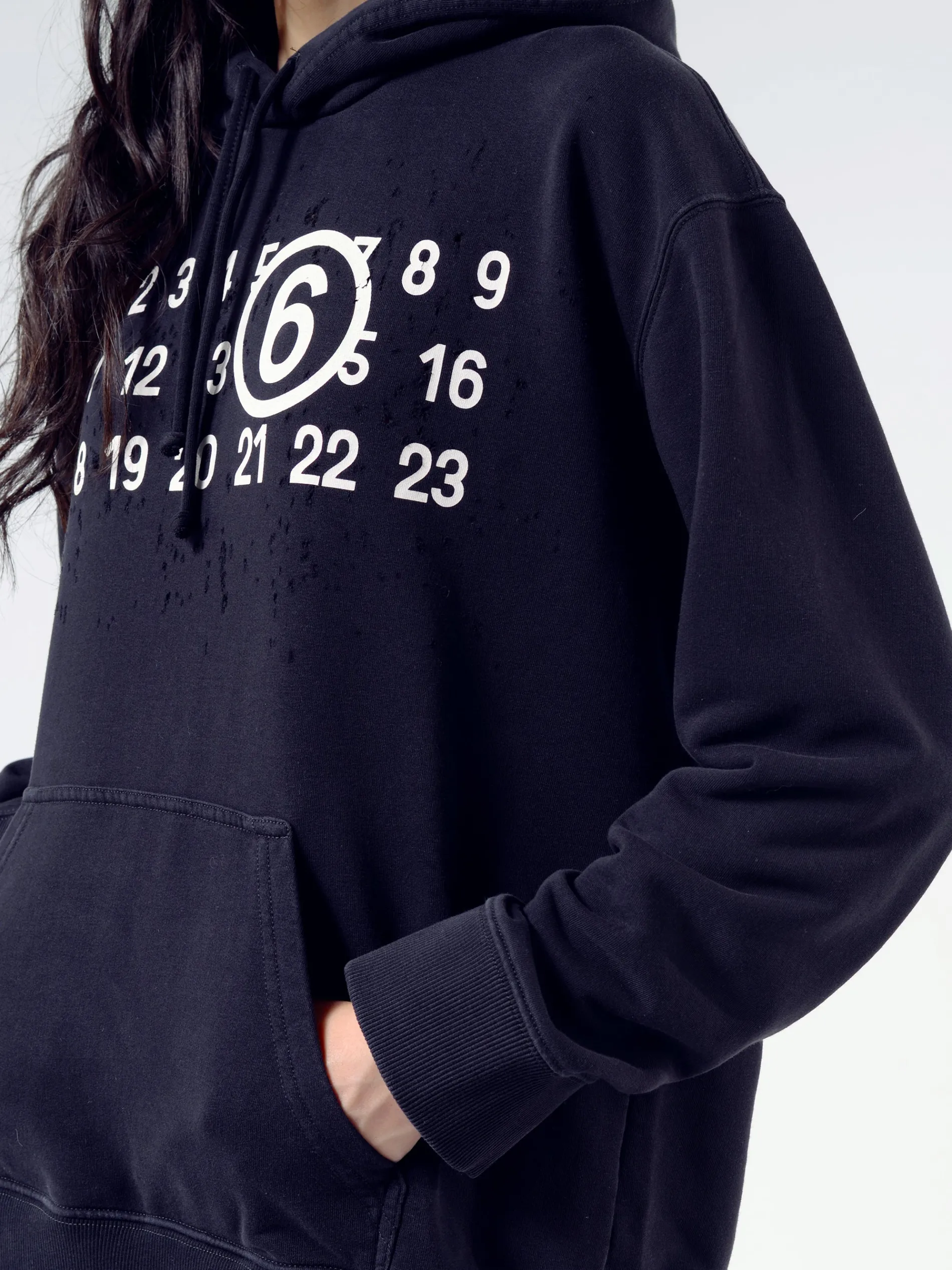 MM6 hooded sweatshirt made from a cotton blended French Terry jersey. Finished with the brand’s signature numeric design.