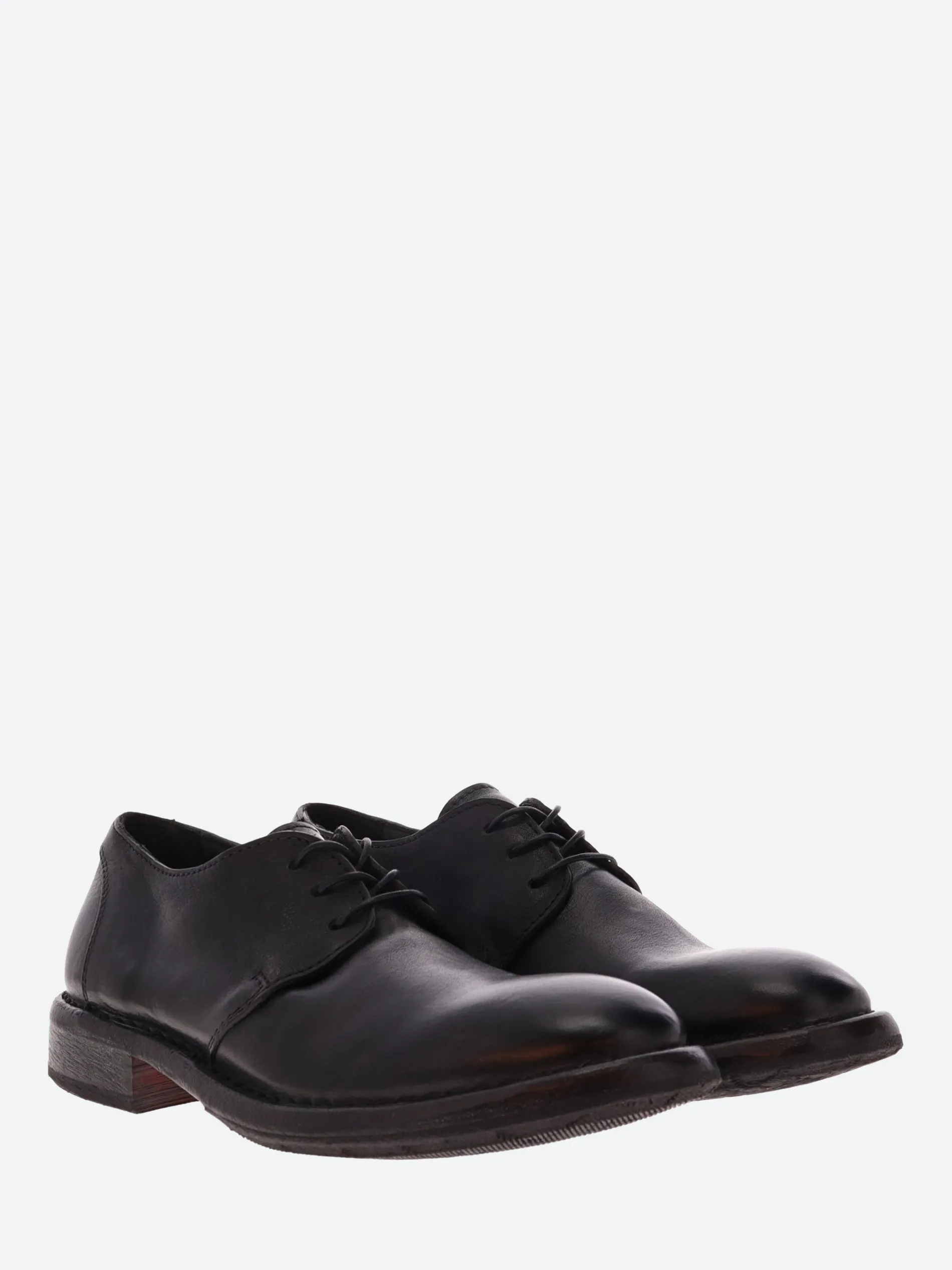 MOMA derby shoe in vintage-style leather and three-hole lacing. Handmade in Italy with a non-slip rubber insert.