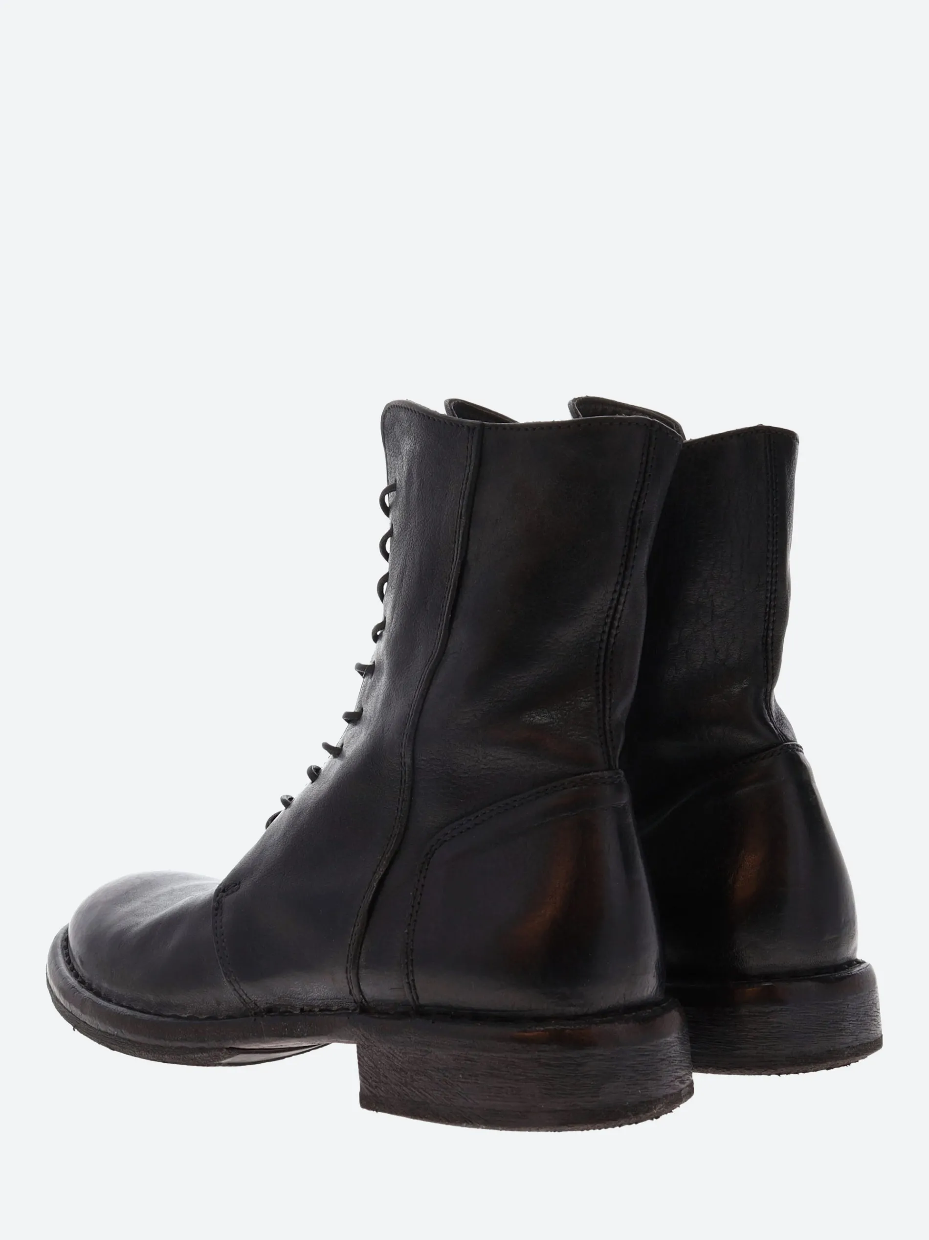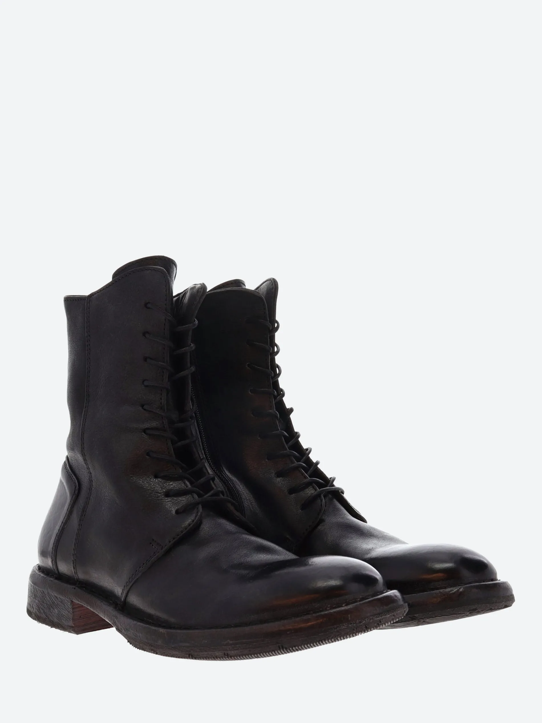 MOMA lace-up boot in vintage-effect leather and an inside zip closure for easy on and off. Handmade in Italy with a non-slip rubber sole insert.