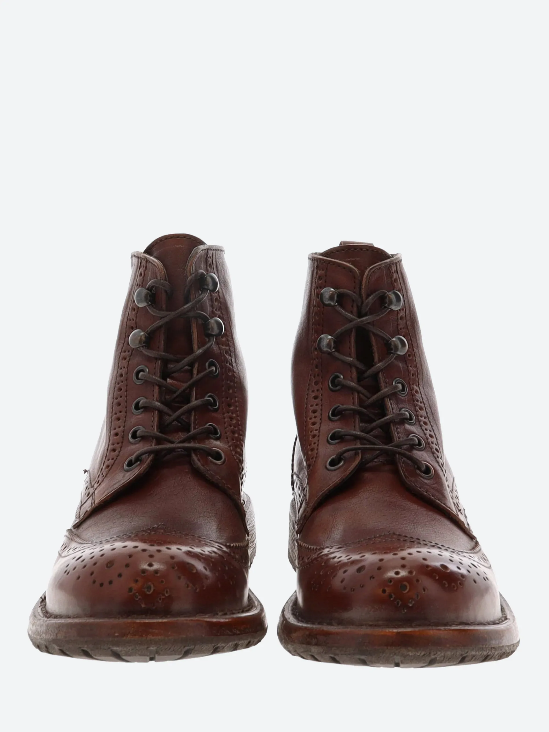 Moma lace-up boot in vintage effect leather with a perforated detail throughout and an inside zip closure for easy on and off. Handmade in Italy with a non-slip rubber insert.